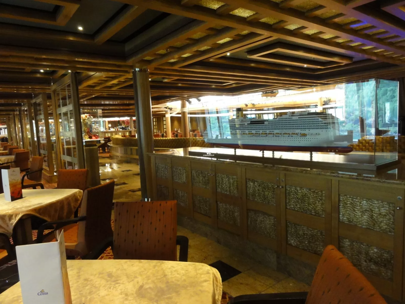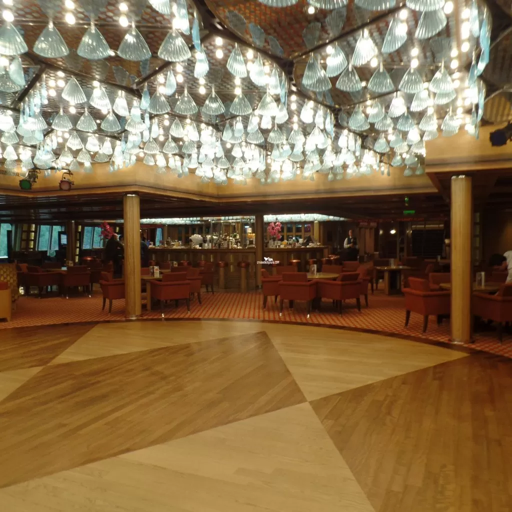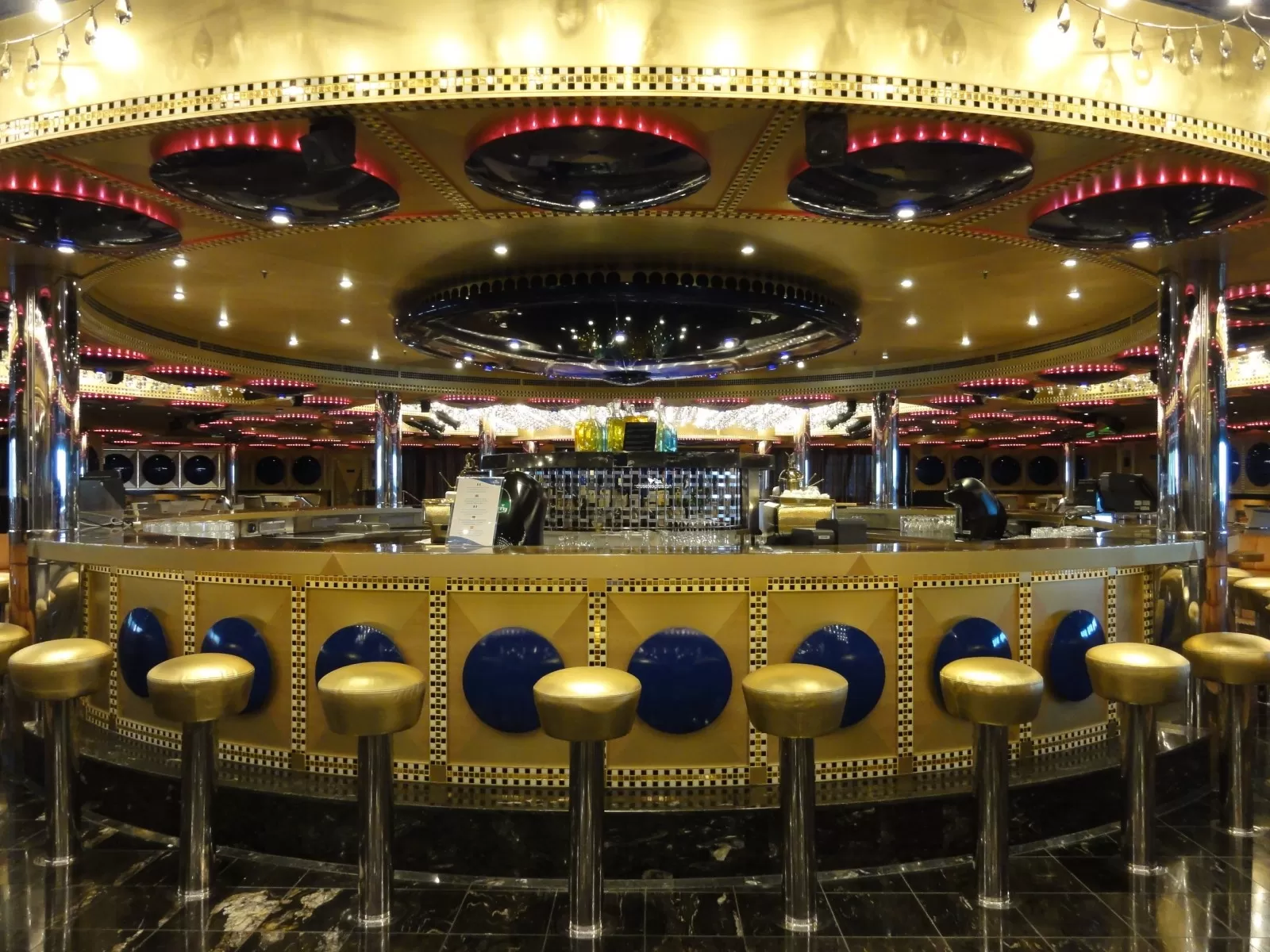 The ship's second entertainment lounge with its own bar and seating area.Piano Bar Camelot