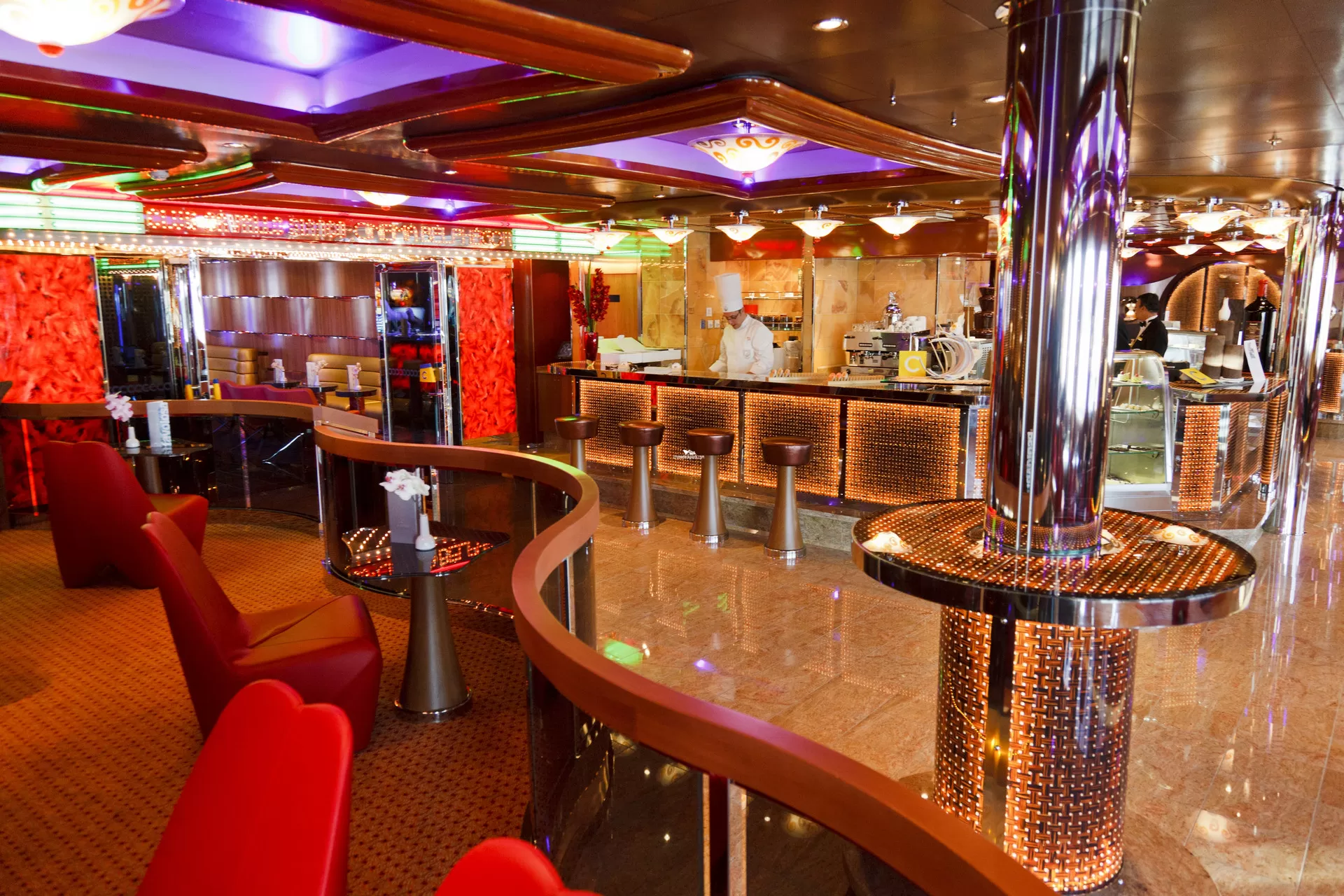 The ship's coffee and chocolate bar that serves a range of drinks and chocolates, and also features a chocolate fountain to dip fruit bonbons into.Grand Bar Palatino