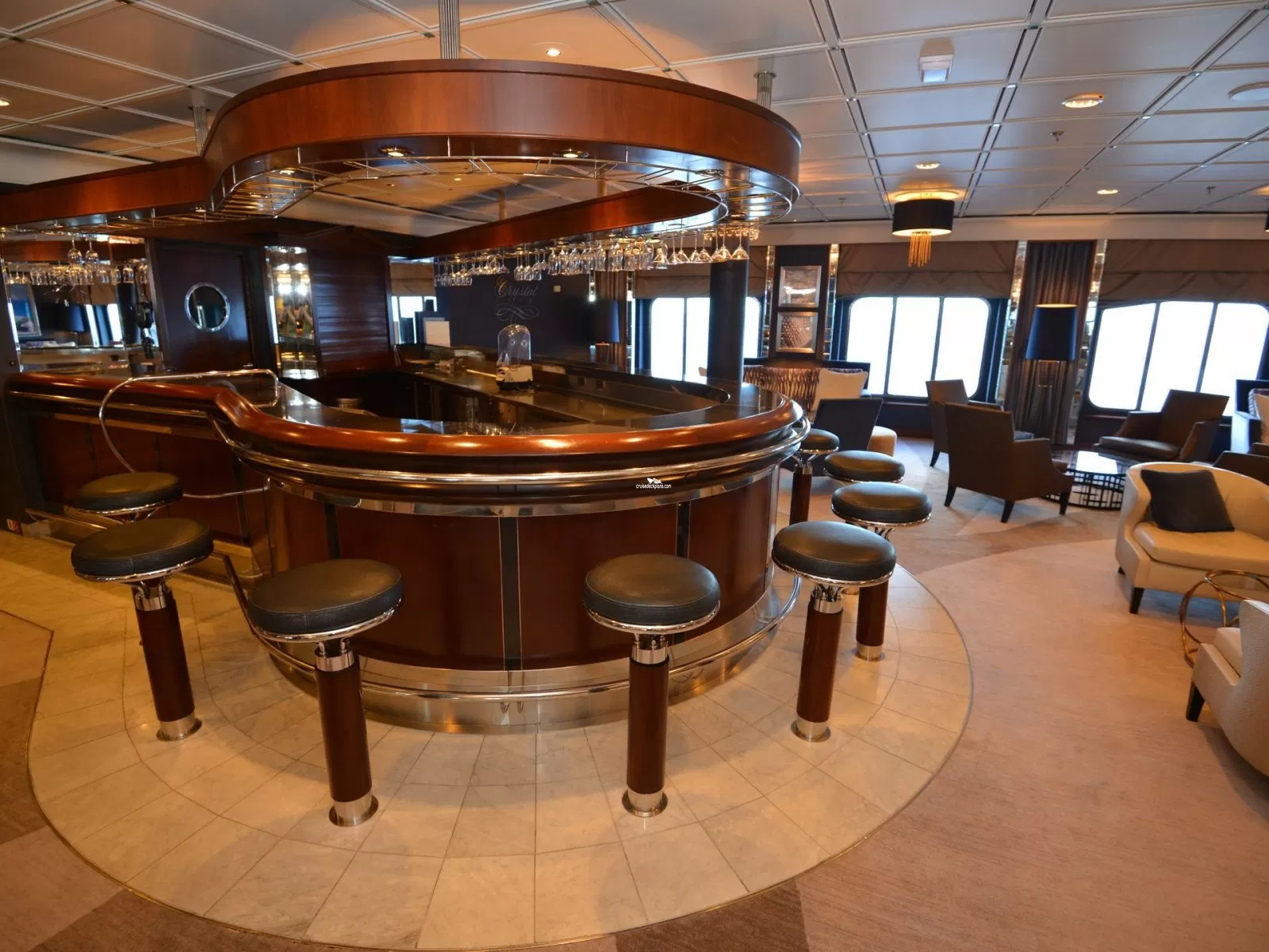Piano bar on portside of ship offering live musical performances and seats 66 people.Waterside Restaurant