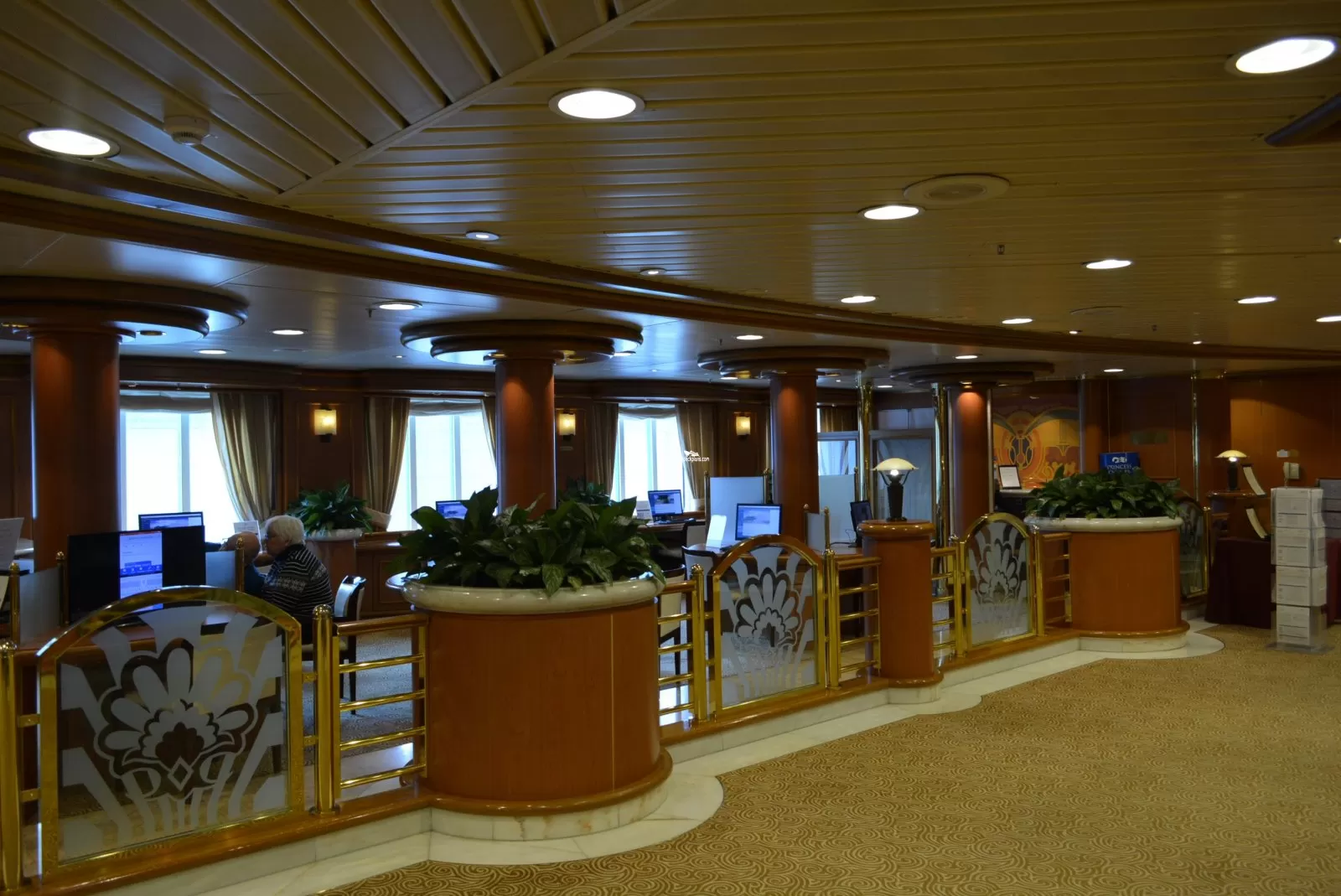 Main atrium. On the first level is a bar, shore excursion desk, captains circle desk, library and intenet cafeInternet Cafe