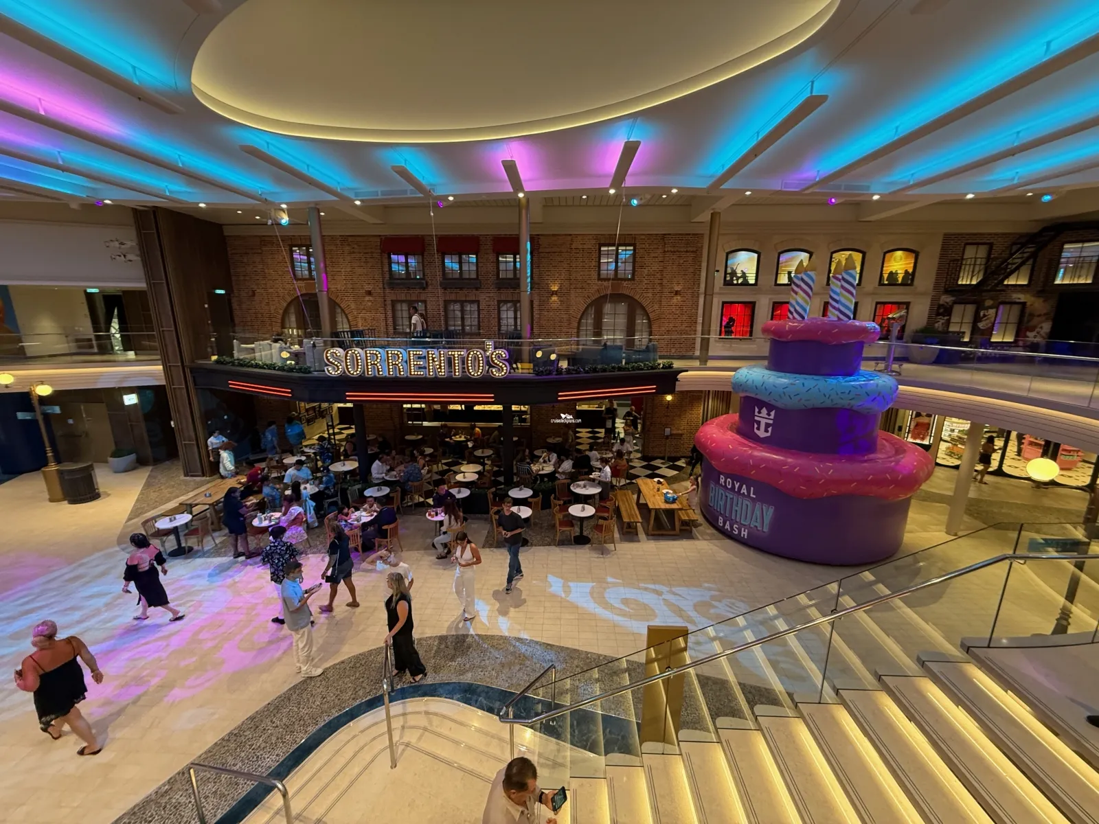 At 362 feet long, the Royal Promenade onboard Icon of the Seas is longer than a football field! It is filled with brand-new experiences, such as the 1400 Lobby Bar, Dueling Pianos, and largest ice rink at sea.The Pearl