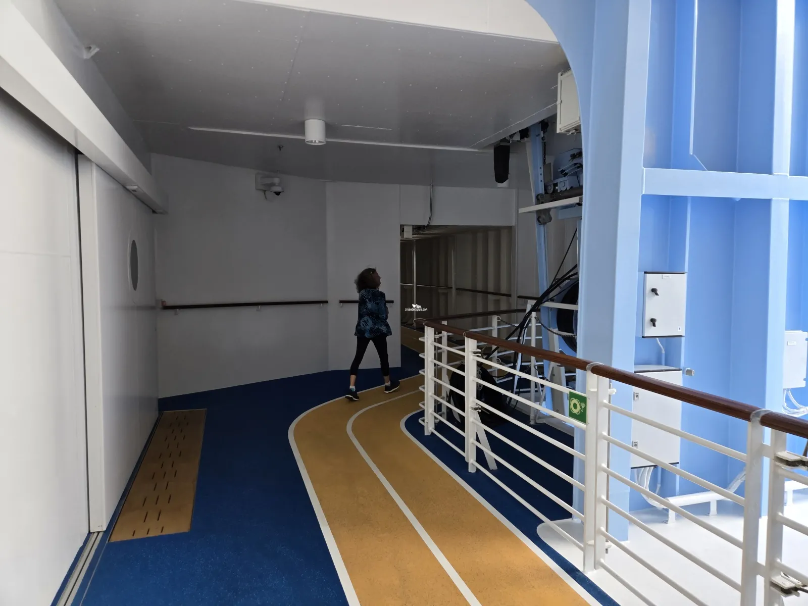Running and walking track that circles the ship on deck 5. Offers spots for lounging and viewing. 2.4 laps around is equal to a mile.Fitness Center