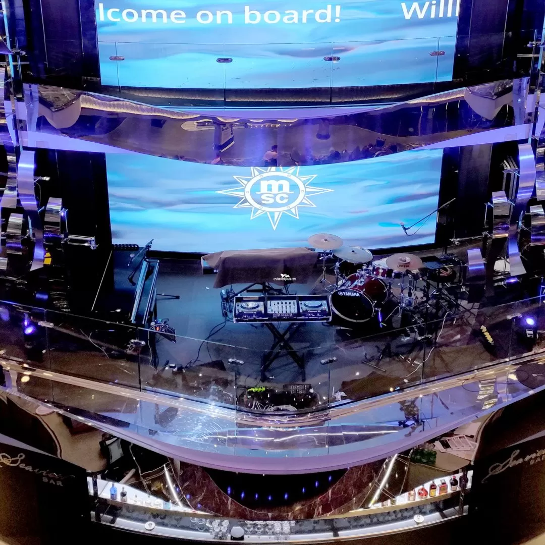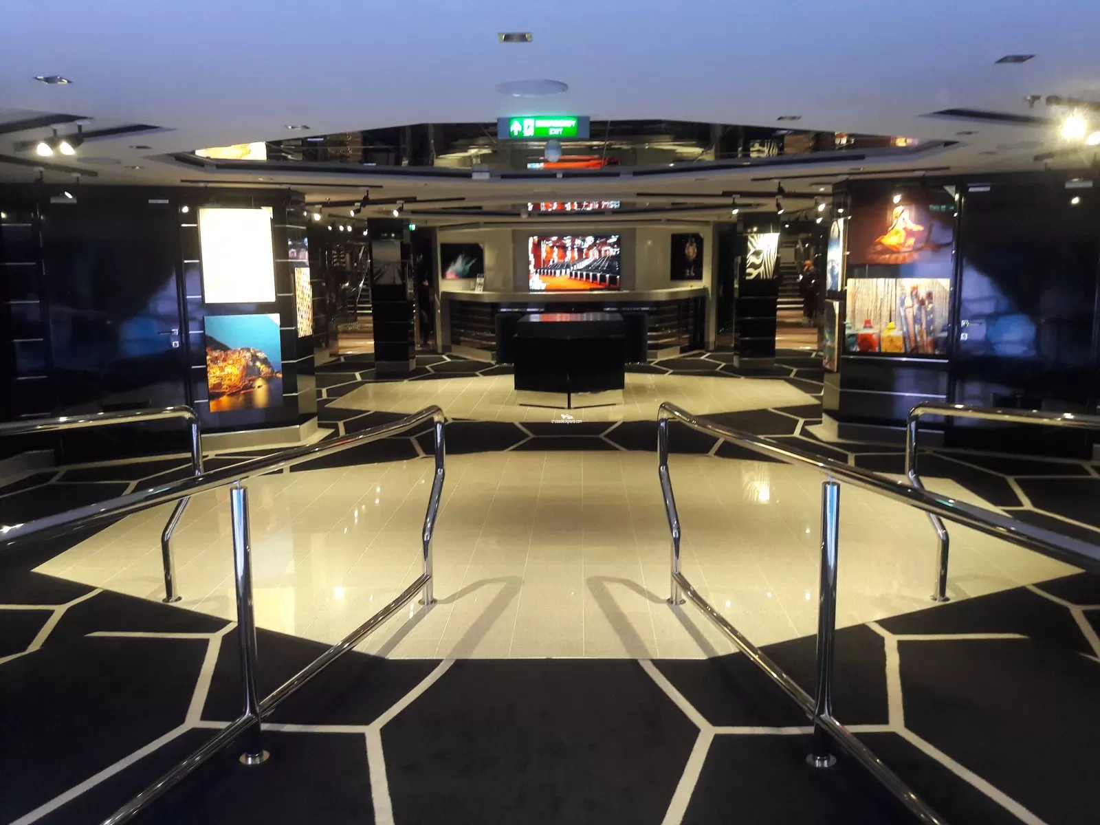 Immersive photo gallery with seats for 50 people.Atrium Deck 5