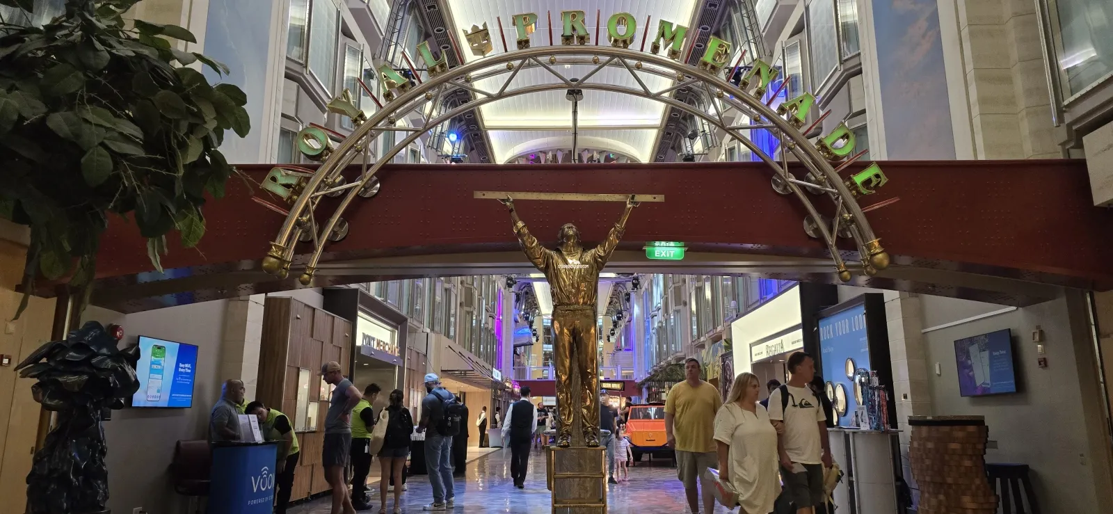 Links the forward and aft Centrums providing guests with various bars, shops, restaurants and the guests relations desk. Designed to replicate a typical European Street (inspired reportedly by the Burlington Arcade in London) the Promenade, with its changing lighting effects, is open all day and night for guests to have a drink or snack to eat, go shopping, or enjoy the street performers' shows and colourful ship parades.To Dry For