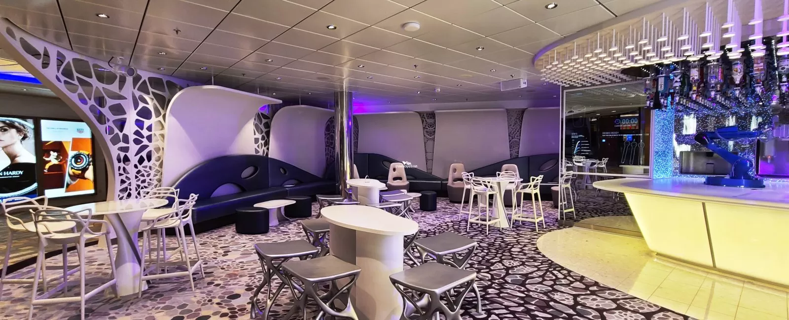 Oasis's Latin themed 90 seat lounge decorated in rich red and orange tones with comfortable leather armchairs, and served by its own bar with stools around it to sit on. With its own dance floor, guests can enjoy the Latin dance music played here each night, late into the night with a mojito or caipirinha. Guests can also take part in Salsa dance classes and champagne art auctions in Boleros during the day.Vitality at Sea Spa & Fitness Center