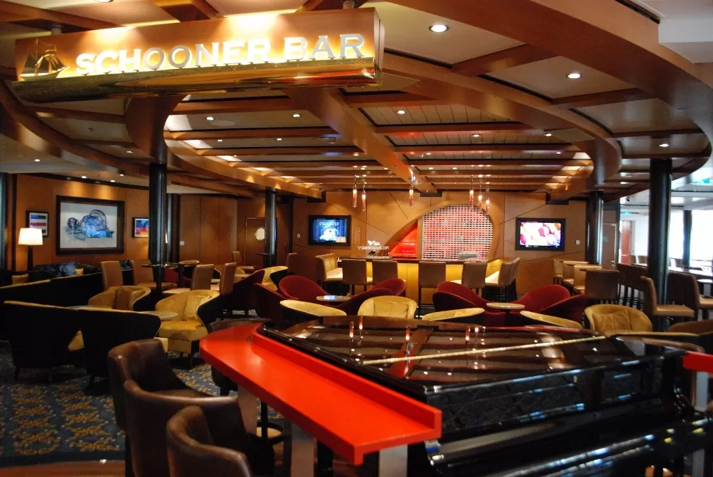 Royal Caribbean's popular signature steakhouse, featuring grade-A premium cuts of steak cooked to your specifications, plus fresh seafood, hearty side dishes and signature desserts in an upscale, contemporary setting. Fee applies.Schooner Bar