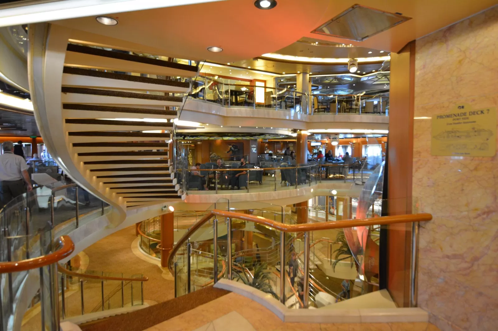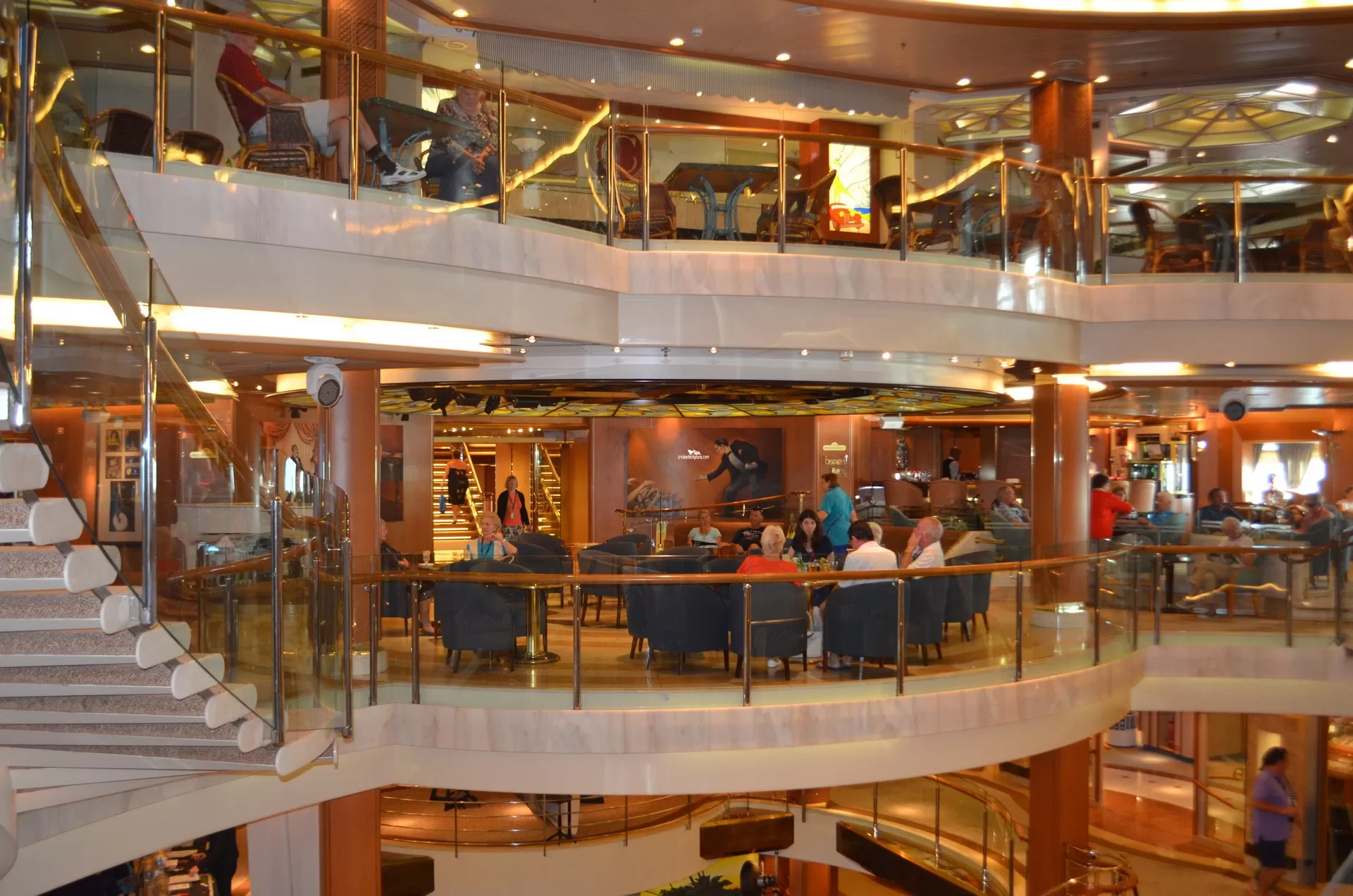 A 4 deck high open floor atrium with live piano music and entertainment.Explorers Bar