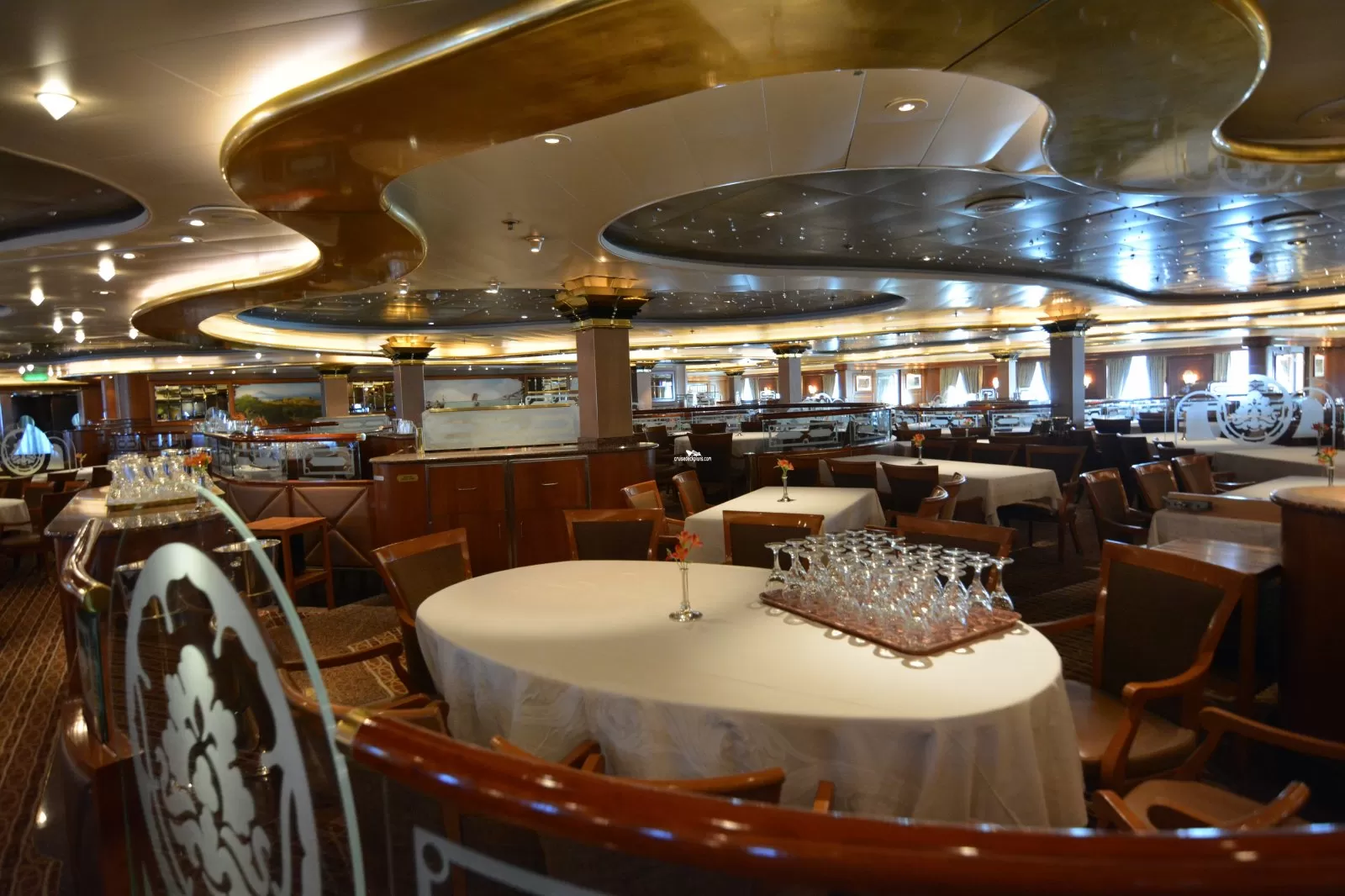 Main dining room located in aft of ship open for dinner only.Cabin Check Tool