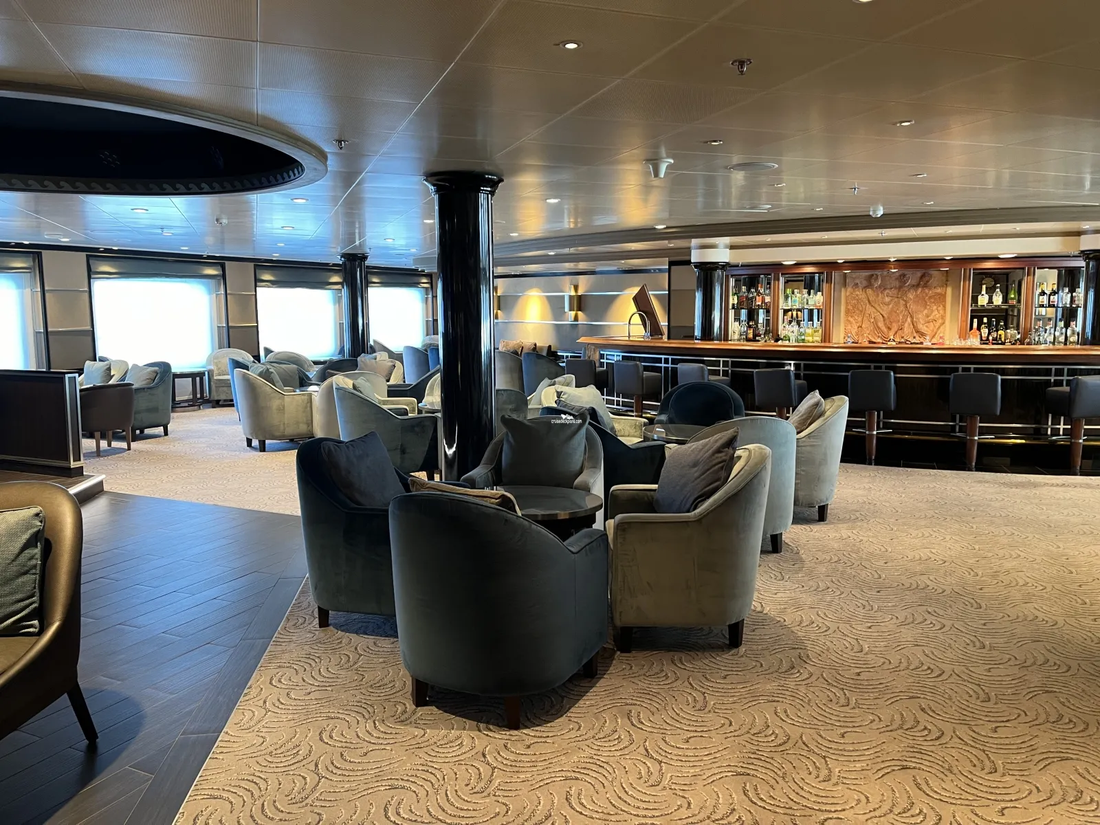 Lounge and bar area serving complimentary cocktails.Show Lounge