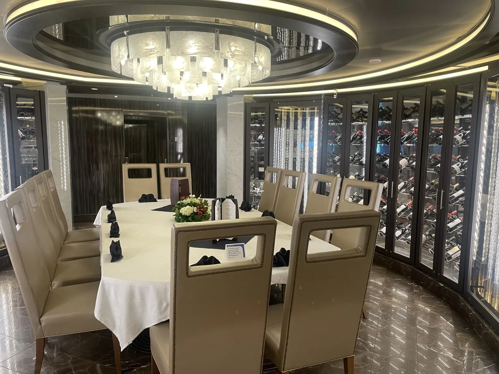Additional charge select restaurant offering Tuscan inspired cuisine with bold and sophisticated flavours. The menu is a la carte and reservations are recommended. The restaurant features a walk through from Vines Wine Bar, where guests can enjoy a pre-dinner drink, and a centre piece displaying a wide range of Italian wines.Lotus Spa