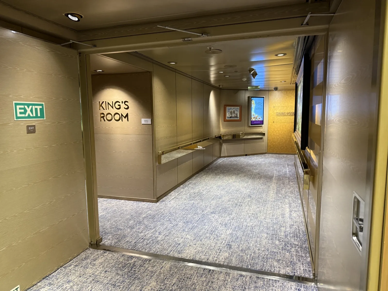 Main dining room that holds 835 guests and has a balcony and a main floor.Future Cruises