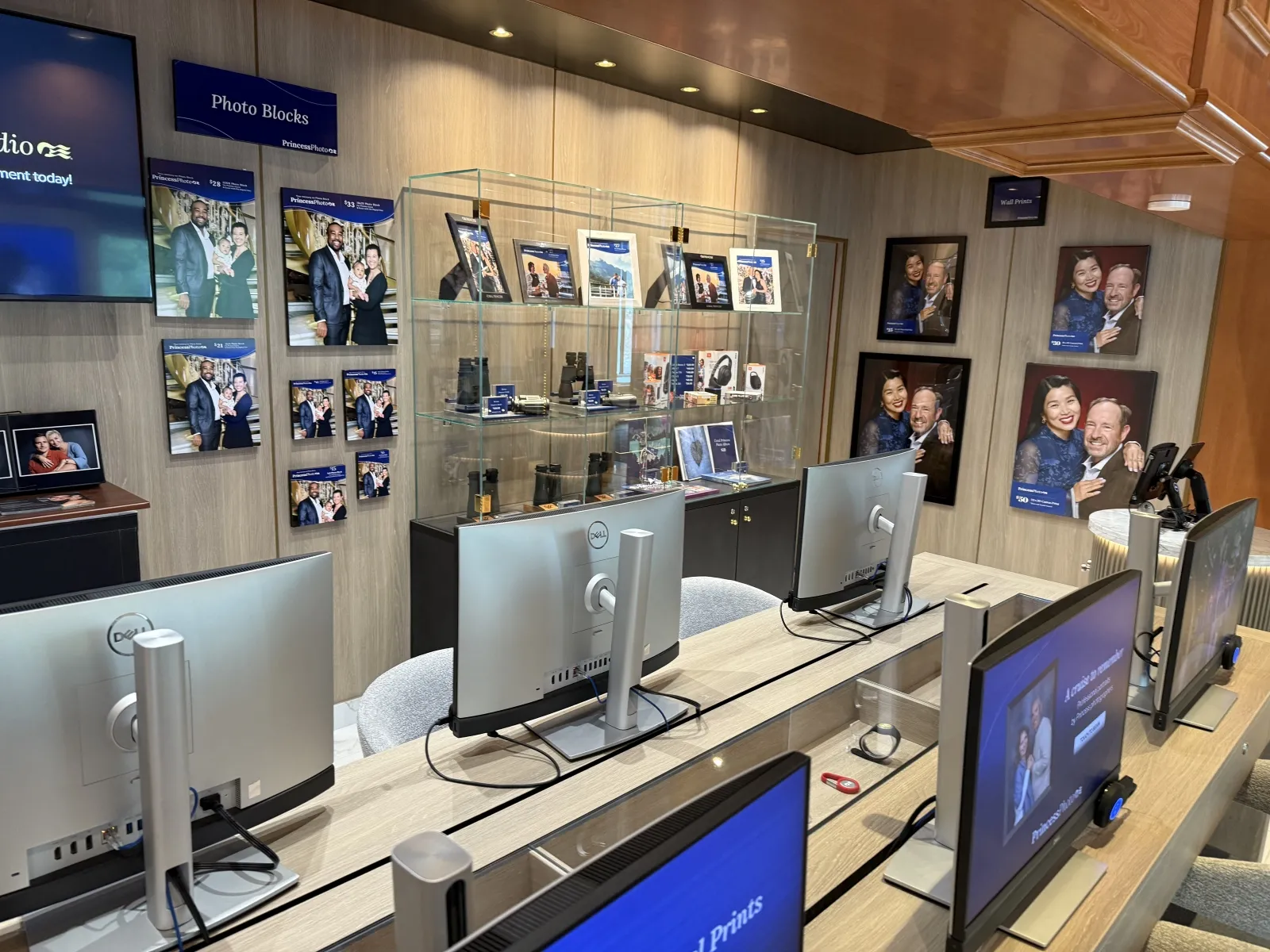 Displays official photos taken by the ship's onboard photographer for guests to peruse and purchase if so desired.Facets