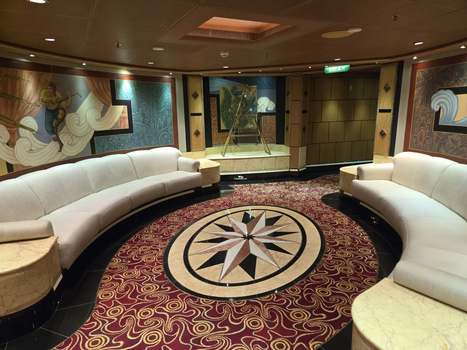Main atrium. On the first level is a bar, shore excursion desk, captains circle desk, library and intenet cafeCabin Check Tool