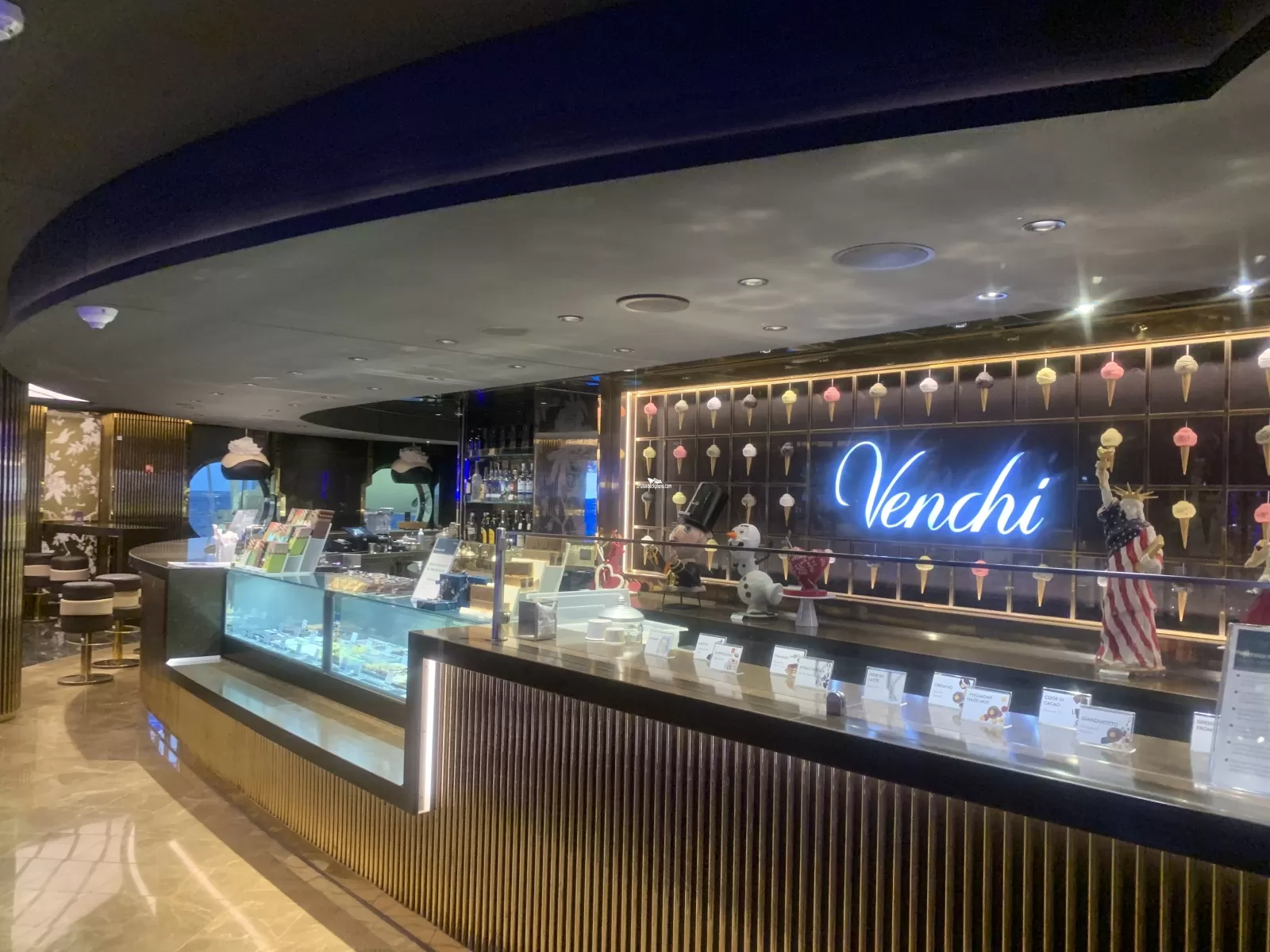 Bar for pre-dinner cocktails. Seats 130 people.Venchi Coffee Bar