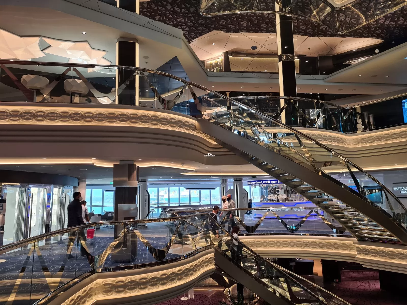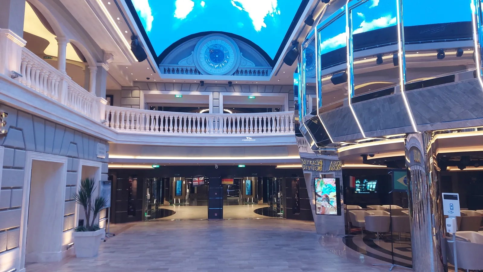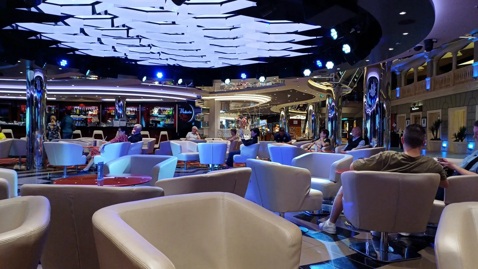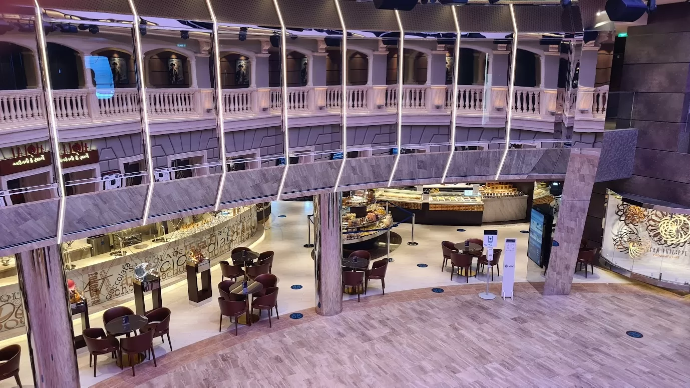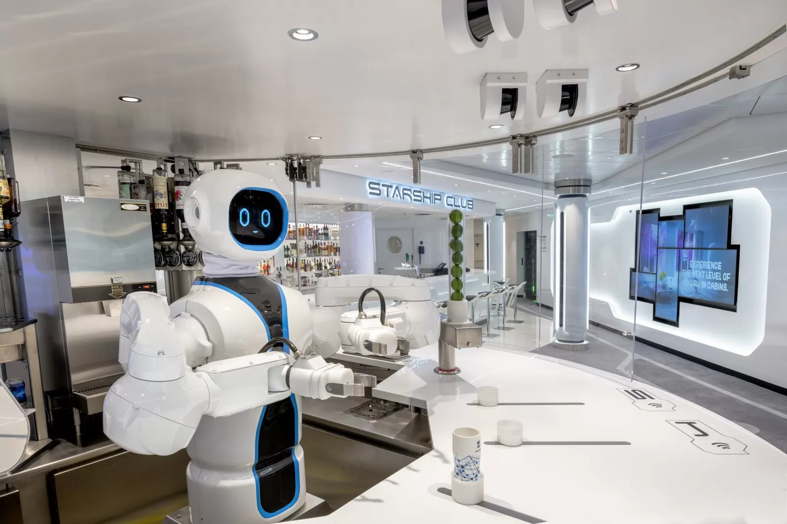 Features Rob the 1st humanoid robotic bartender, create your own recipe with over 40 ingredients to choose from. Serves 16 signature cosmic cocktails (both alcoholic and non-alcoholic) using Infinity Touch table device. You can also purchase themed futuristic glasses. Seats 60 guests in 1,722 square foot area.Atrium - Deck 6