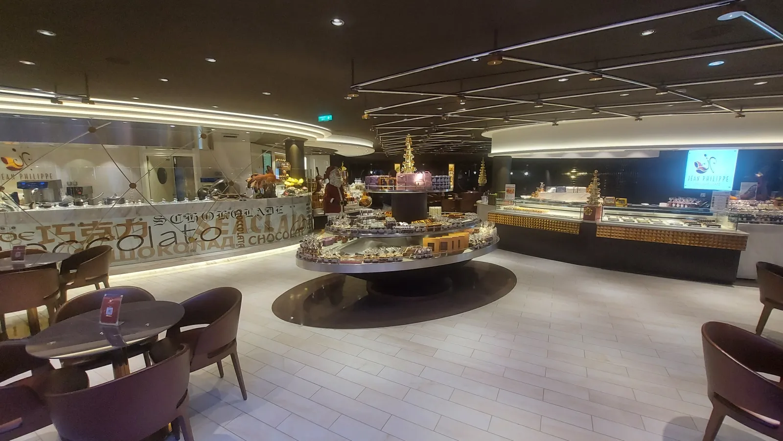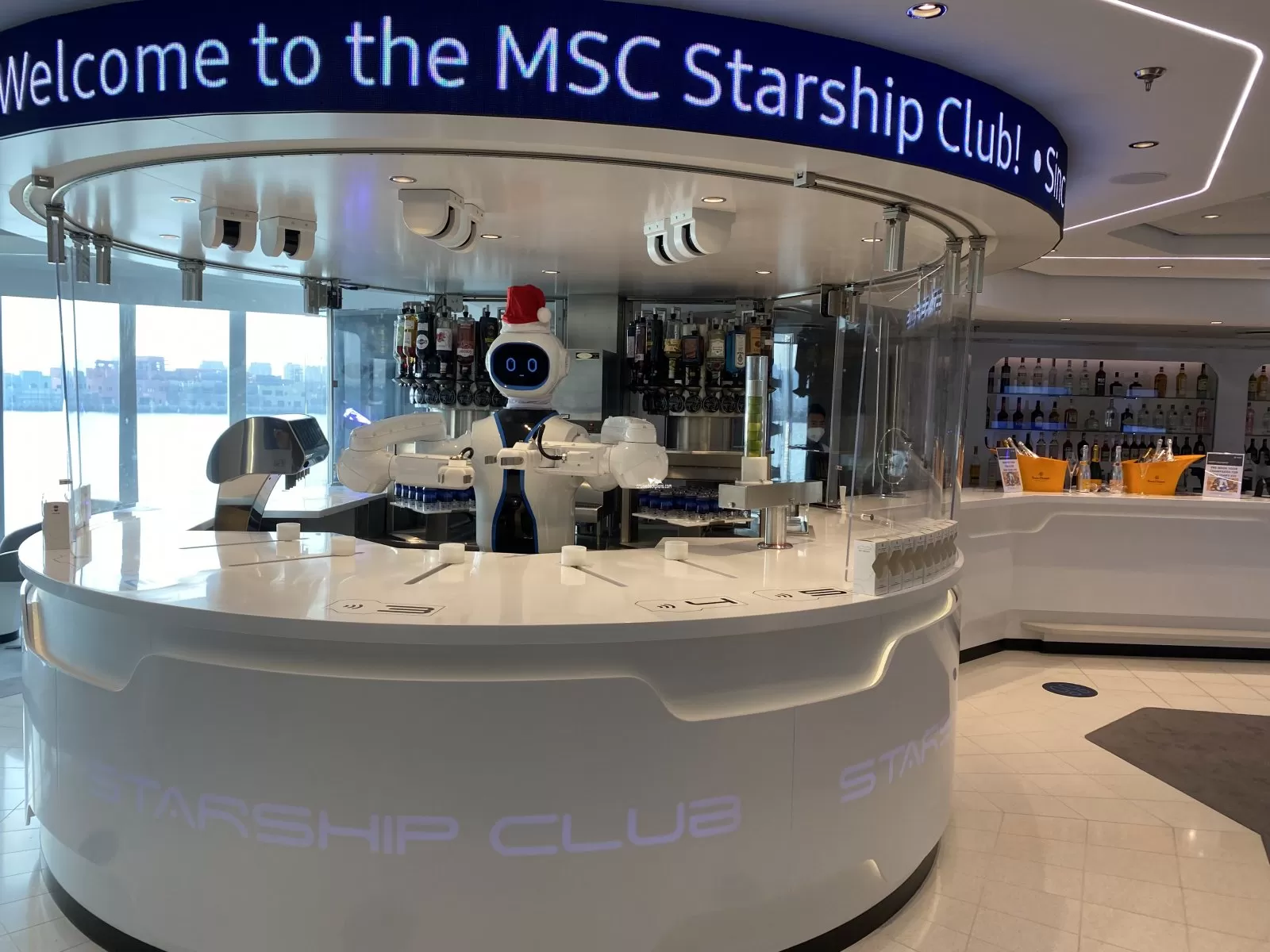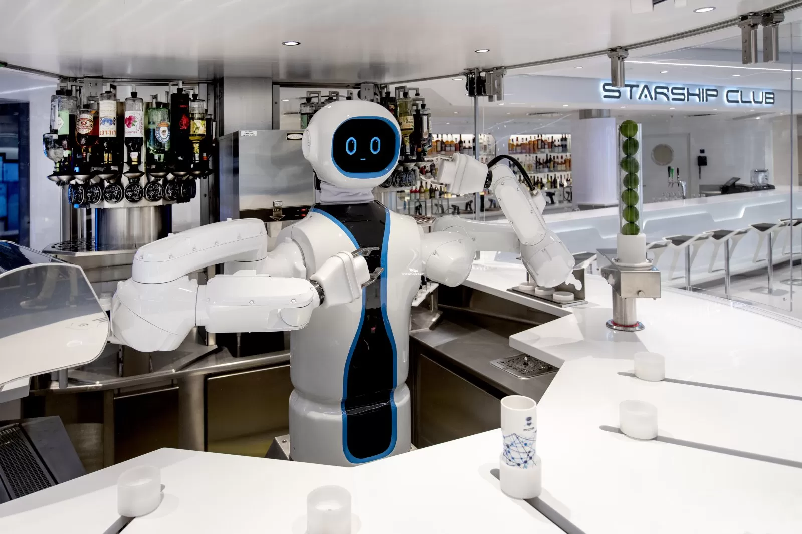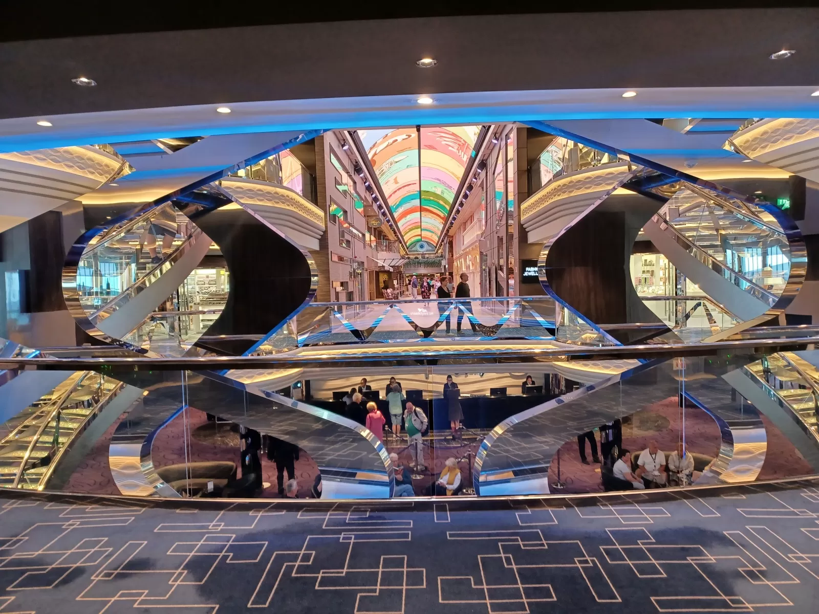Features Rob the 1st humanoid robotic bartender, create your own recipe with over 40 ingredients to choose from. Serves 16 signature cosmic cocktails (both alcoholic and non-alcoholic) using Infinity Touch table device. You can also purchase themed futuristic glasses. Seats 60 guests in 1,722 square foot area.Atrium - Deck 6