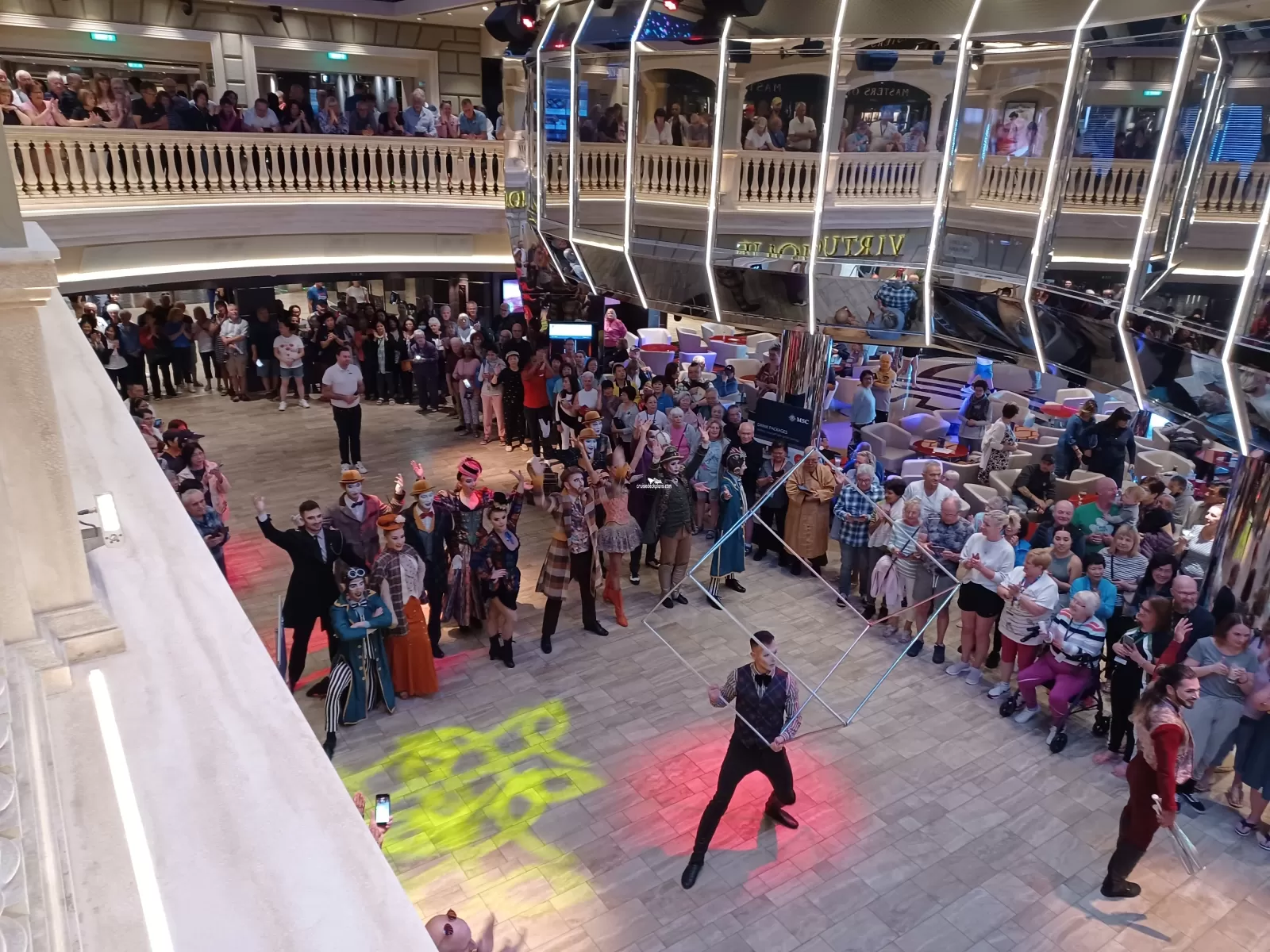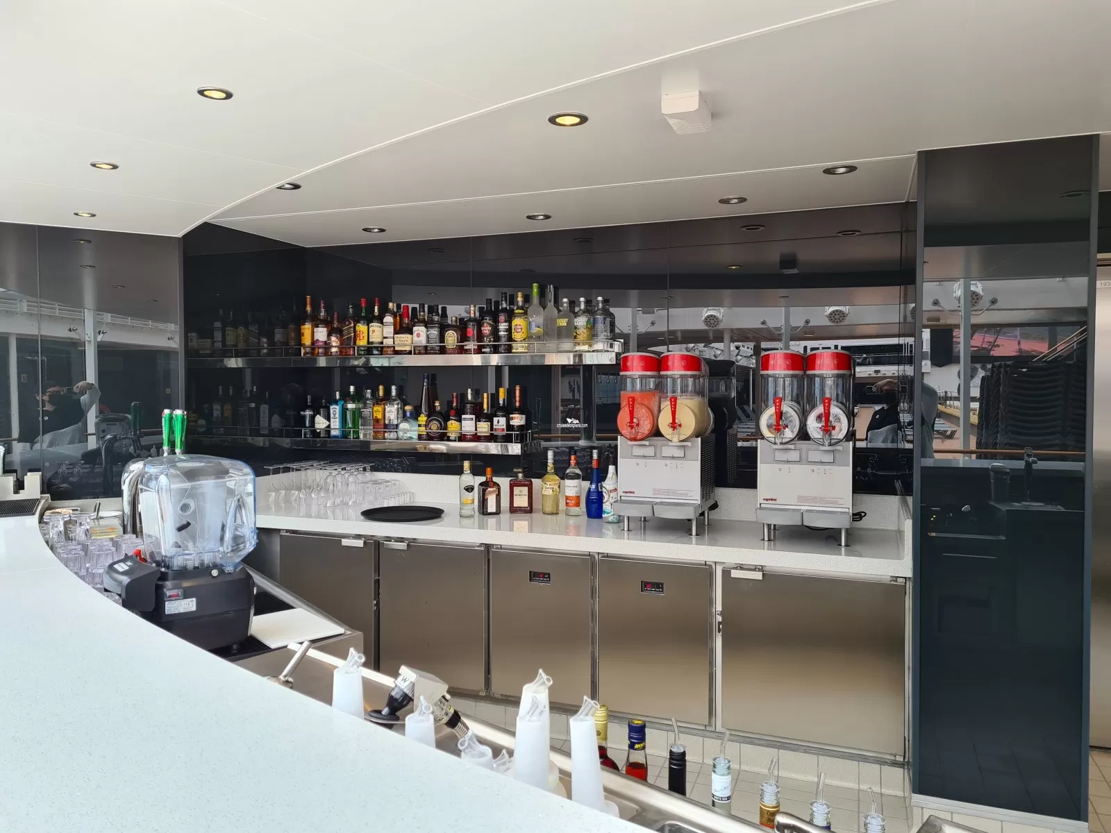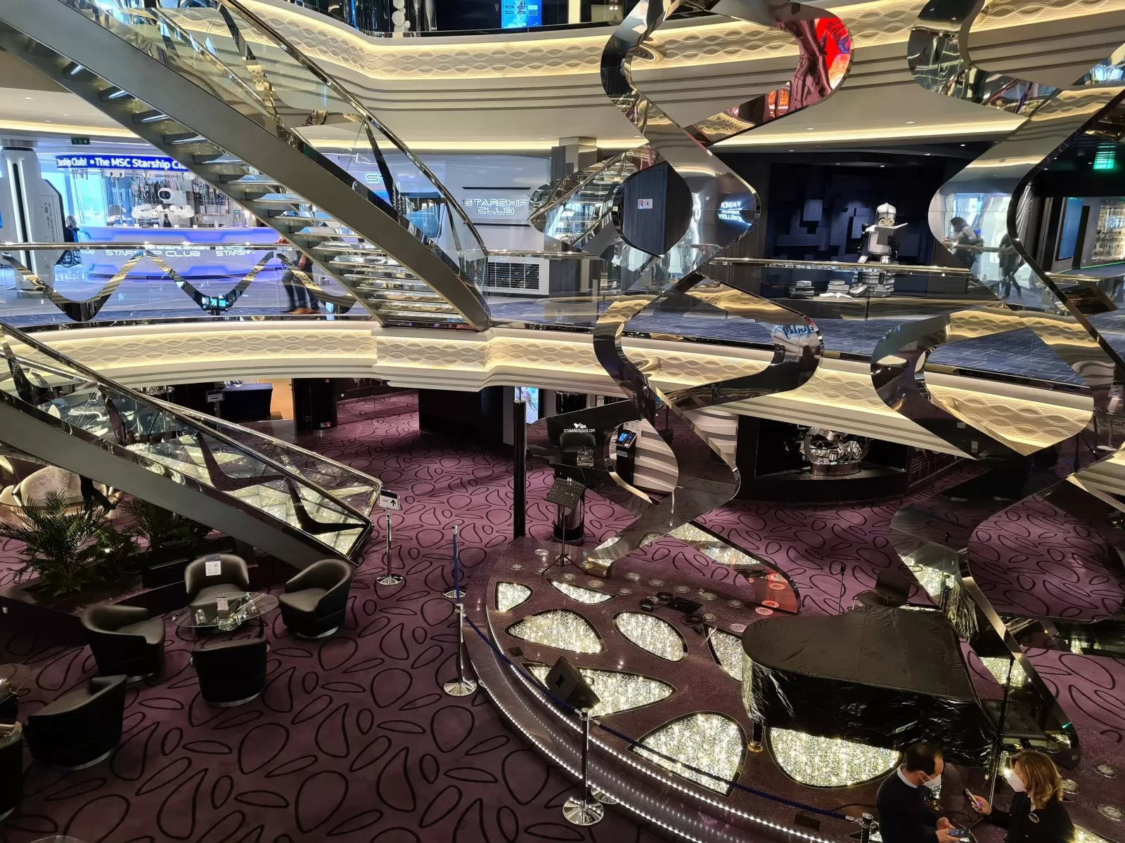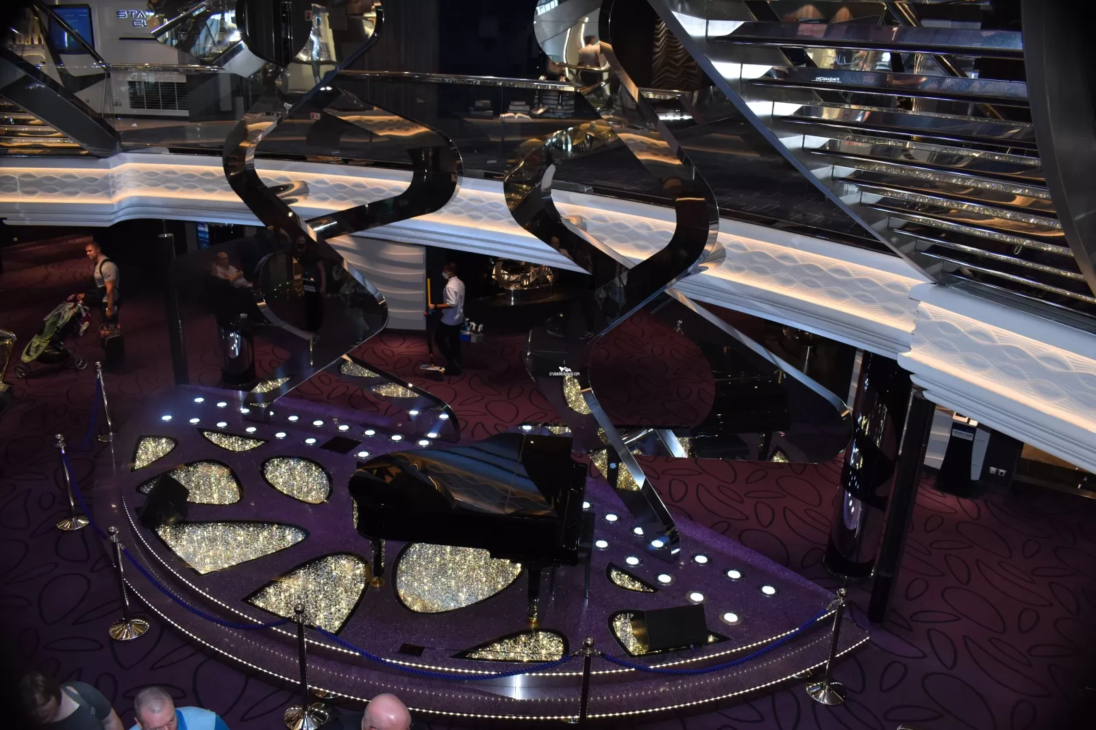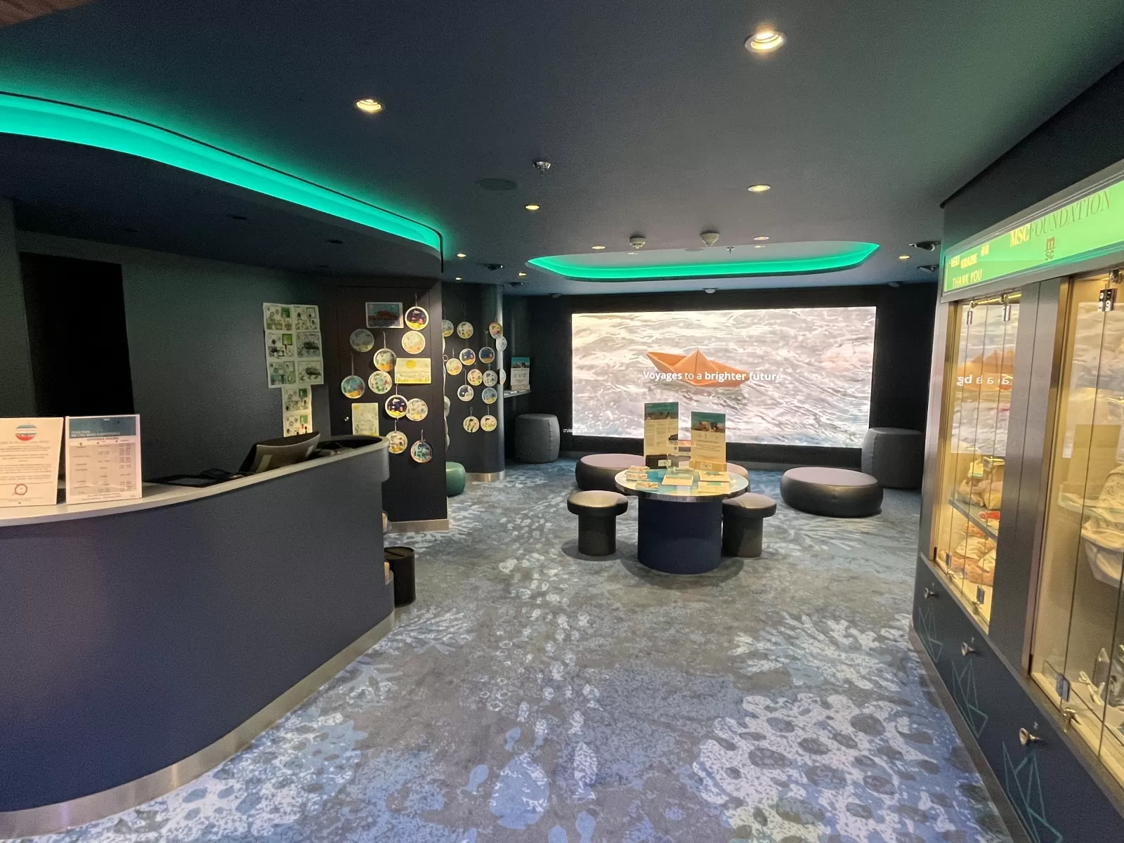 Features Rob the 1st humanoid robotic bartender, create your own recipe with over 40 ingredients to choose from. Serves 16 signature cosmic cocktails (both alcoholic and non-alcoholic) using Infinity Touch table device. You can also purchase themed futuristic glasses. Seats 60 guests in 1,722 square foot area.Atrium - Deck 6