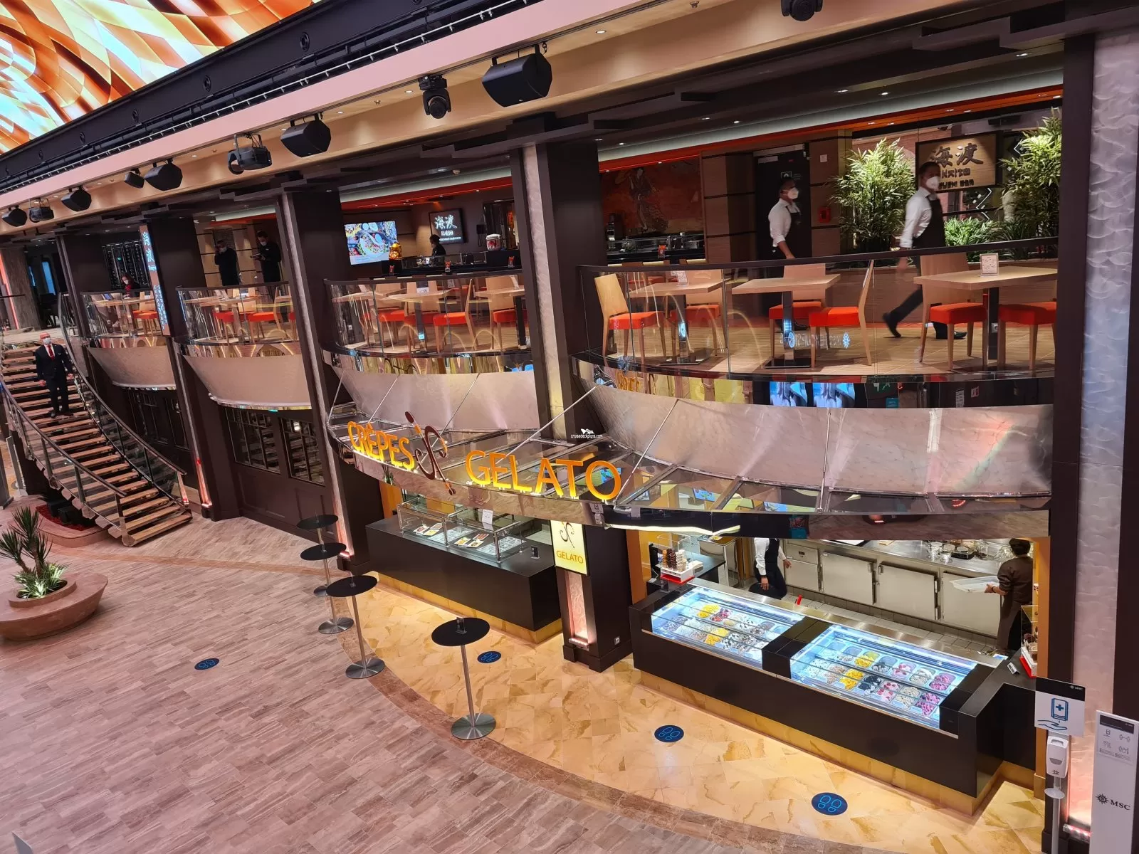 Inner promenade area covering 13,454 square feet of space.Jean-Philippe Crepes & Gelato