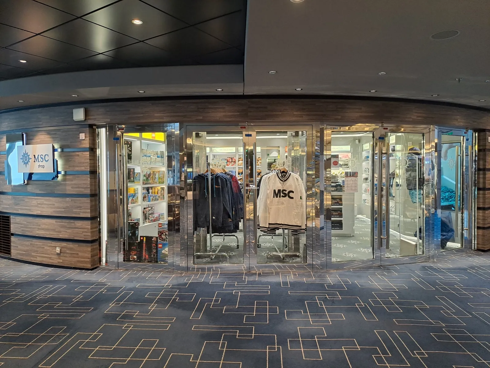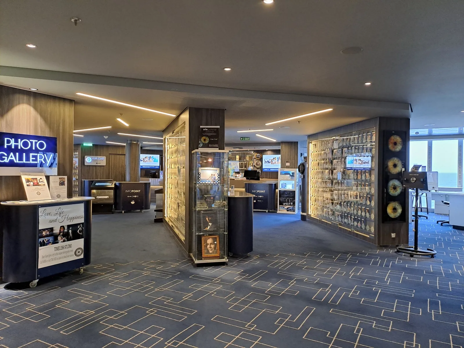 Two level main show lounge seats 945 guests in 10,763 square foot area.Shopping Gallery