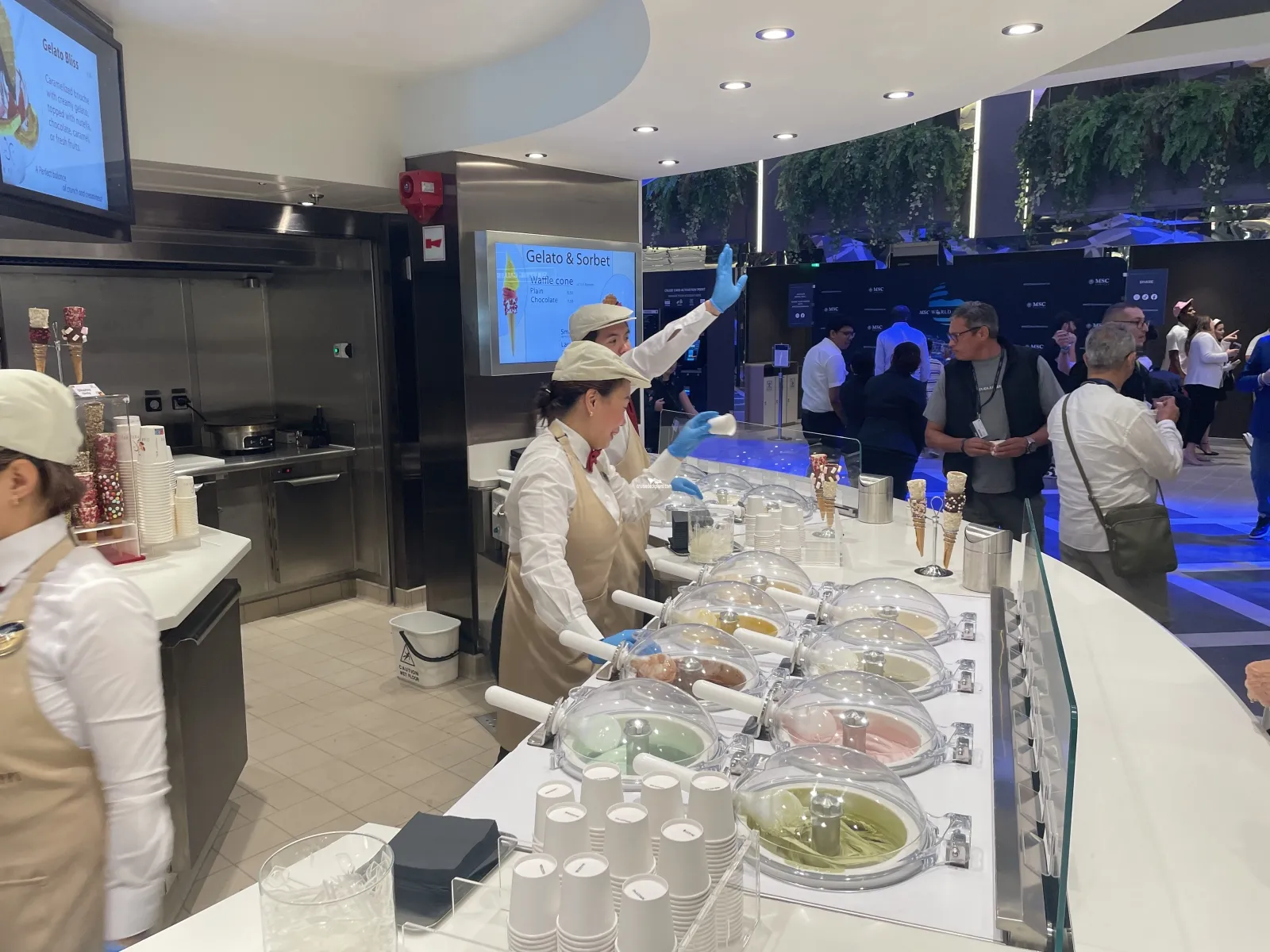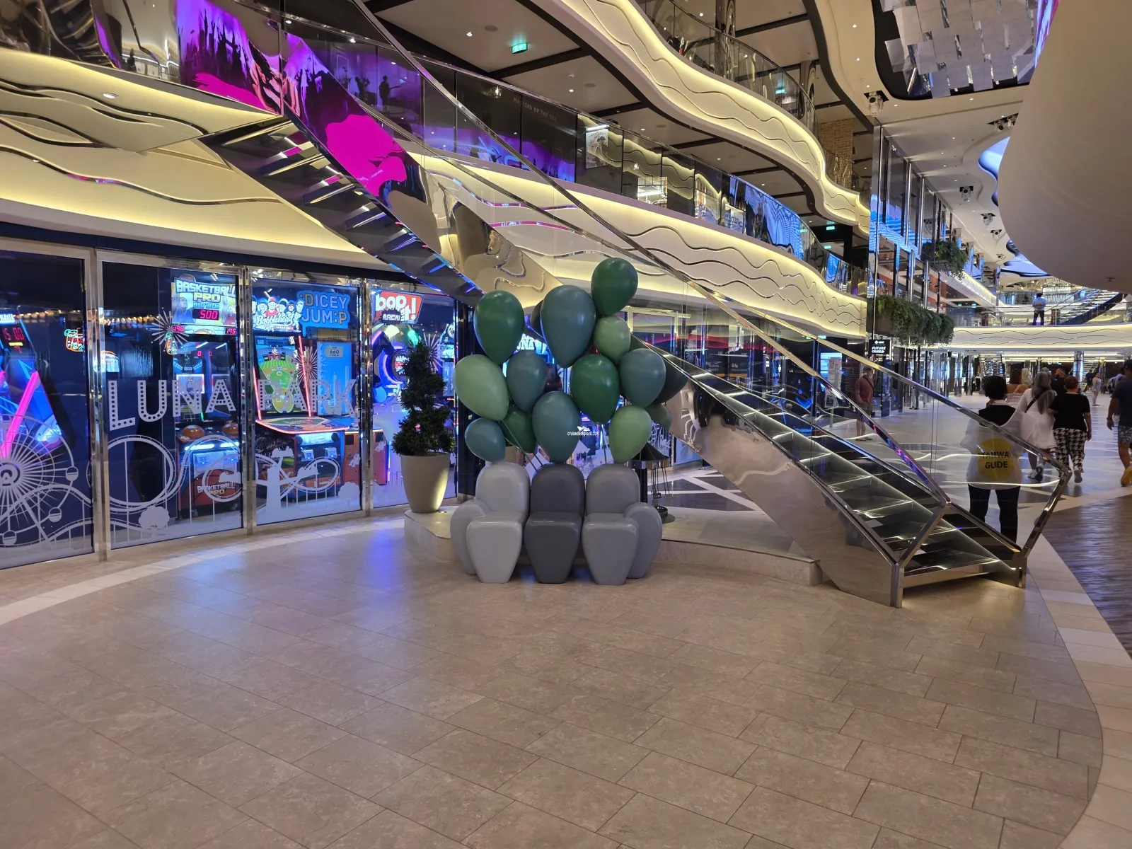 Three level indoor promenade covered by an imposing LED sky screen with entertainment, shops and bars.Jean-Phillippe Chocolate Cafe