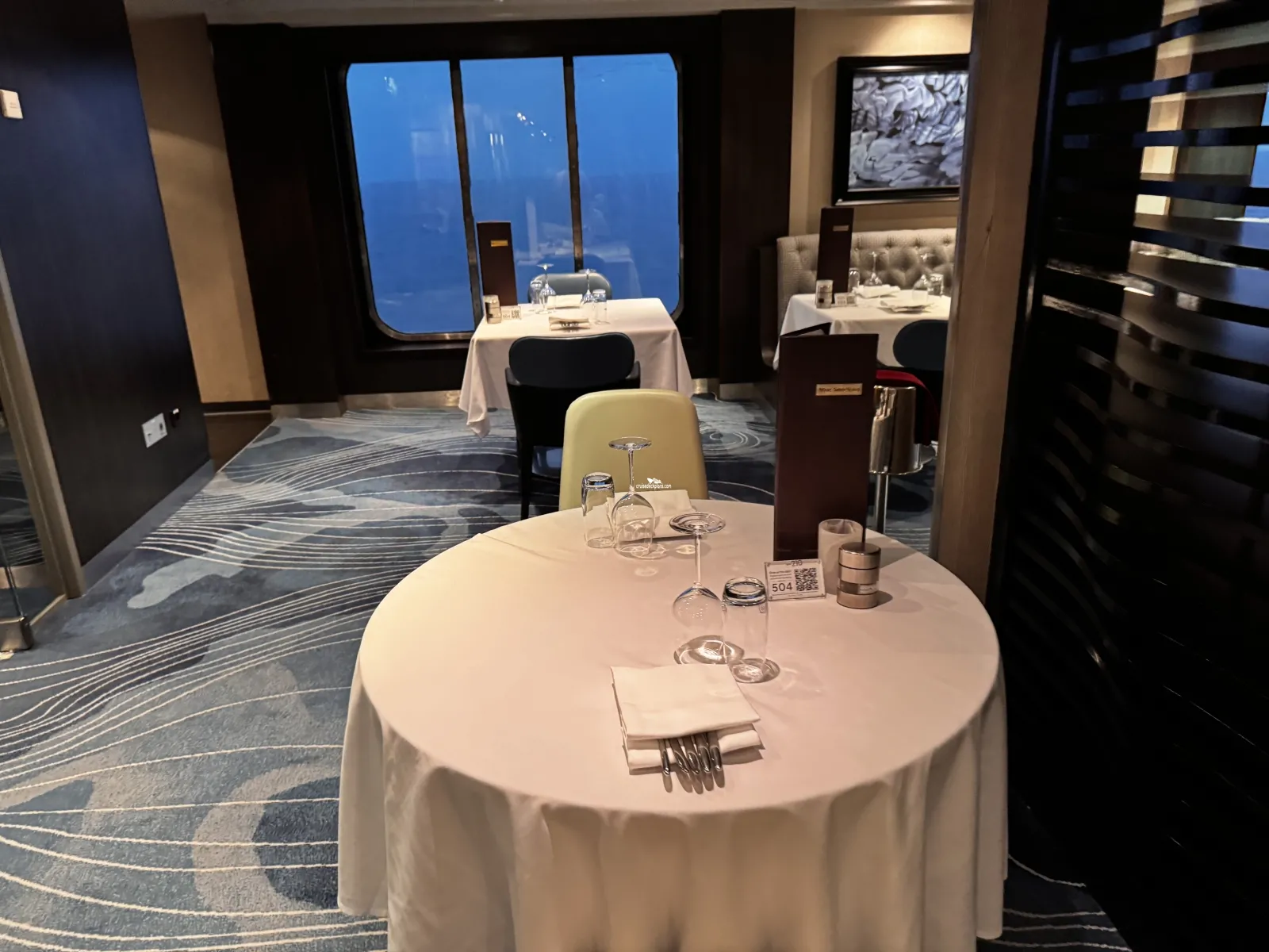 Seats 140 guests within its casual atmosphere and opens from 5.30pm to 10.30pm, with reservations recommended and a cover charge of $15 per guest. This venue and Le Bistro switched places during the May 2016 drydock.Le Bistro French Restaurant