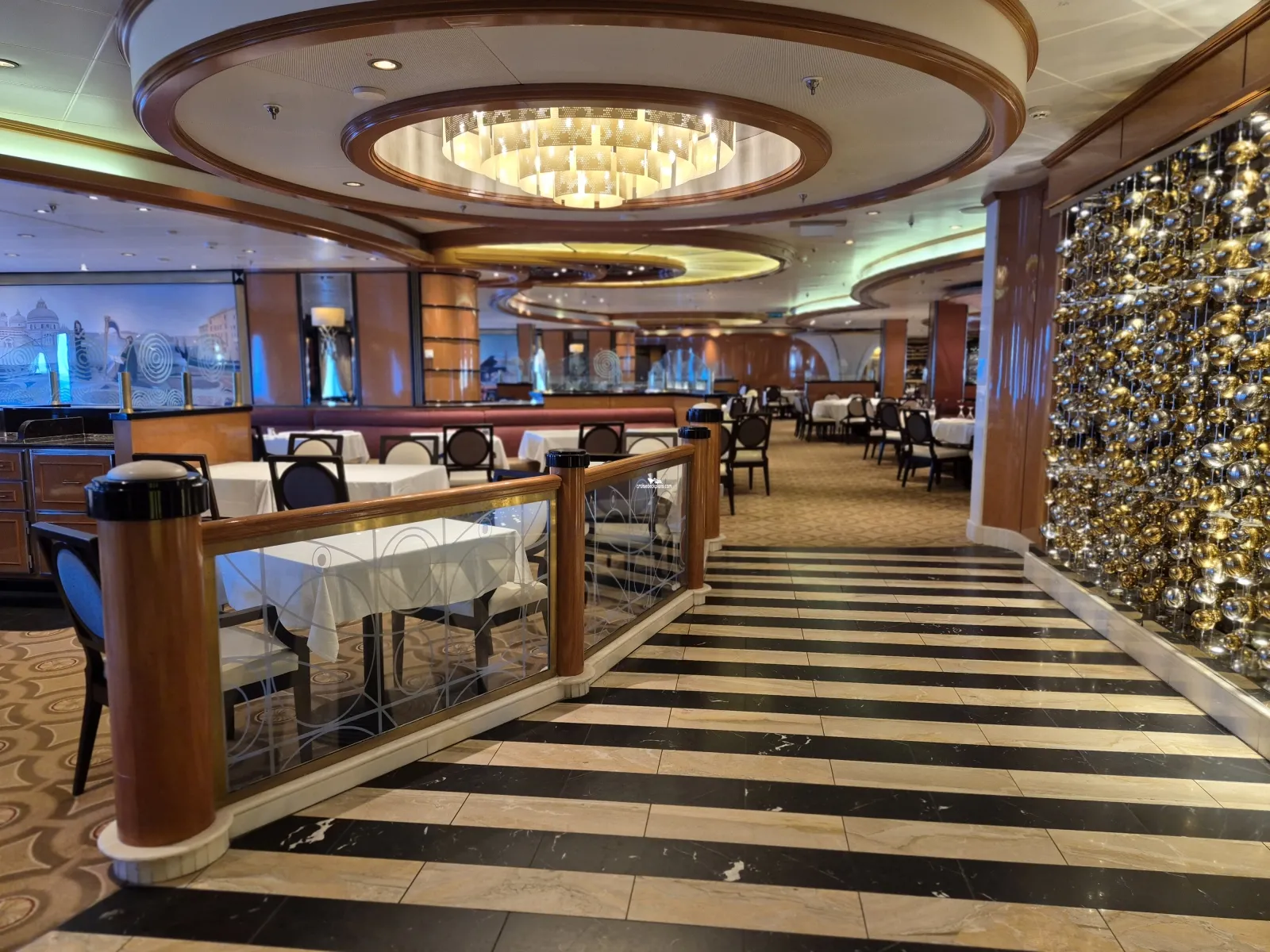 It is the ship's traditional Dining Room where guests choose either an early or late seating time and eat at the same table each night. The Allegro also features the Chef's Table Lumiere where guests sit at a custom glass table surrounded by white curtains providing privacy for the diners.Concerto Dining Room