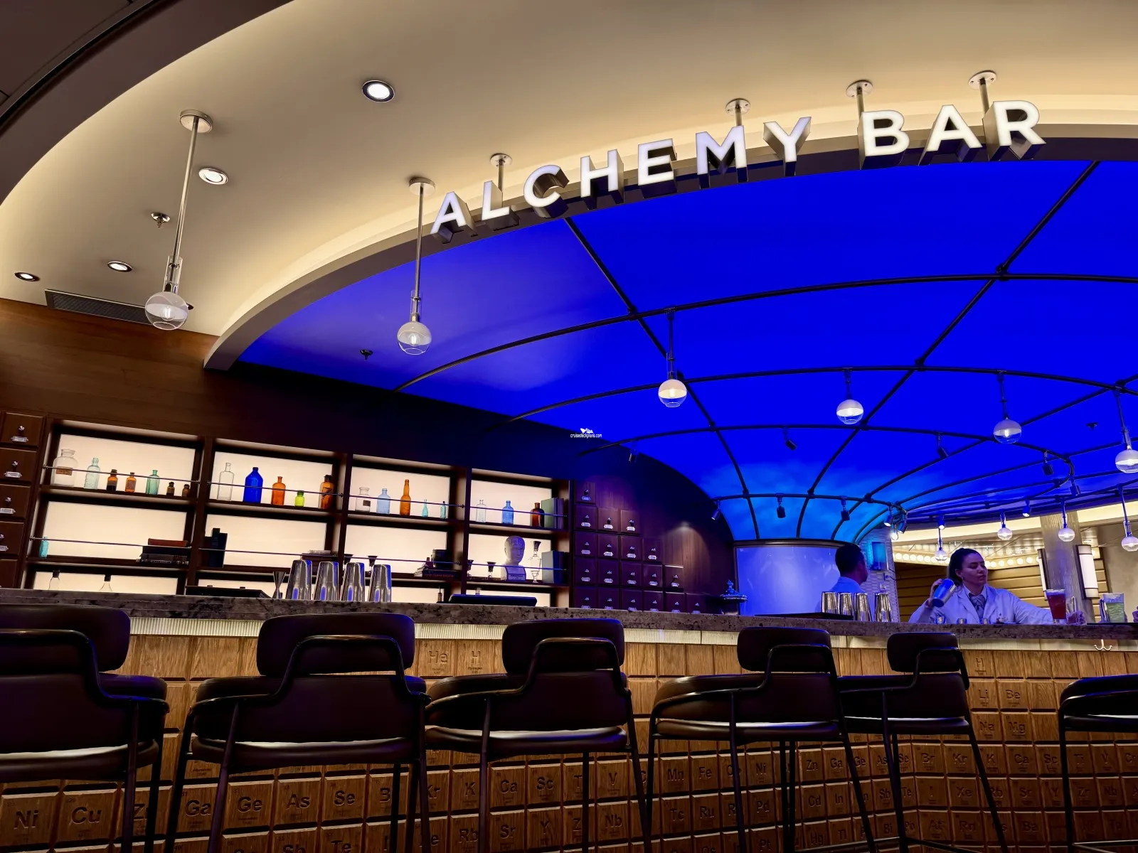 A selection of boutiques and duty free shops with items ranging from clothes, jewelry and spa products to souvenirs and duty free alcohol.Alchemy Bar