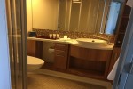Automatic stateroom doors. No doorsill to get into stateroom. Ramped bathroom thresholds. Bathroom grab bars. Lowered sink and vanity. Roll-in showers. Fold-down shower stood. Hand-held shower heads. Lowered closet bars. Five-foot turning radius in accessible staterooms in most configurations (except inside with split bed configurations. T-turn is available instead).