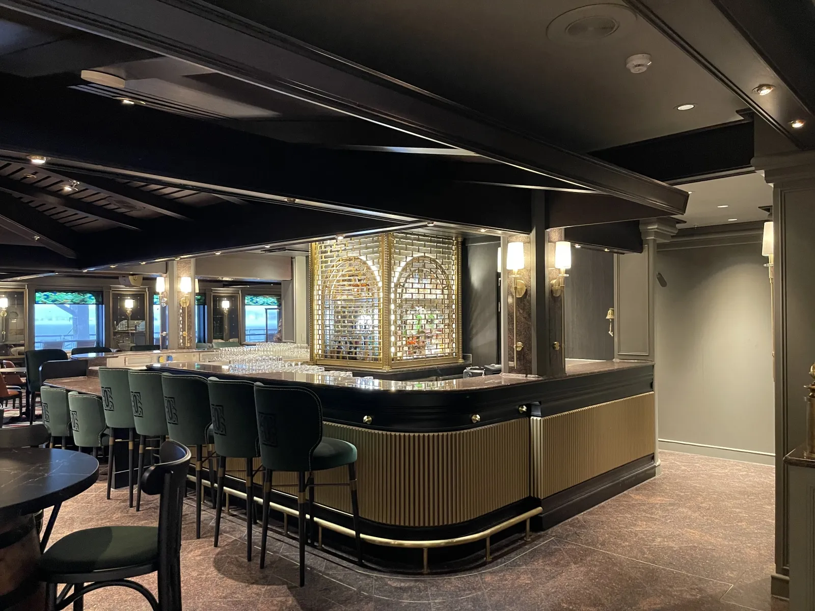This venue was Wheelhouse Bar. Traditional Irish pub with live music, interactive entertainment and mouthwatering menu items including the freshly-ground ribeye-blend Bushmills Blue Burger and the O’Malley’s Burger patties, dressed with Bushmills Whiskey glaze. Located in heart of the ship adjacent to the Piazza and open for lunch, dinner and late-night fare, O’Malley’s serves up comfort food at its best - pub-style Fish & Chips, Traditional Bangers & Mash, Shepherd’s Pie – along with casual and friendly banter and possibly even a wee bit of blarney.Cabin Check Tool