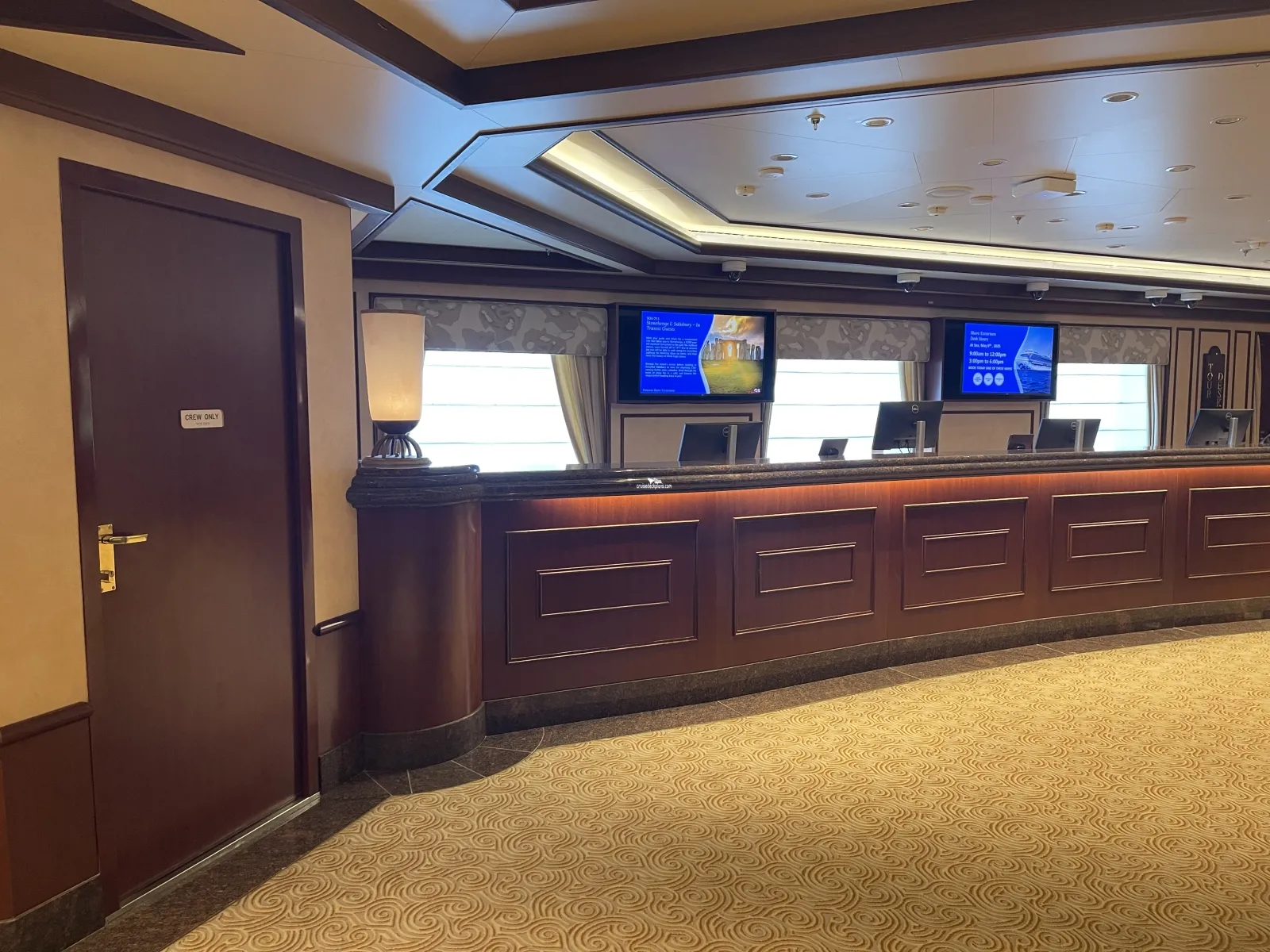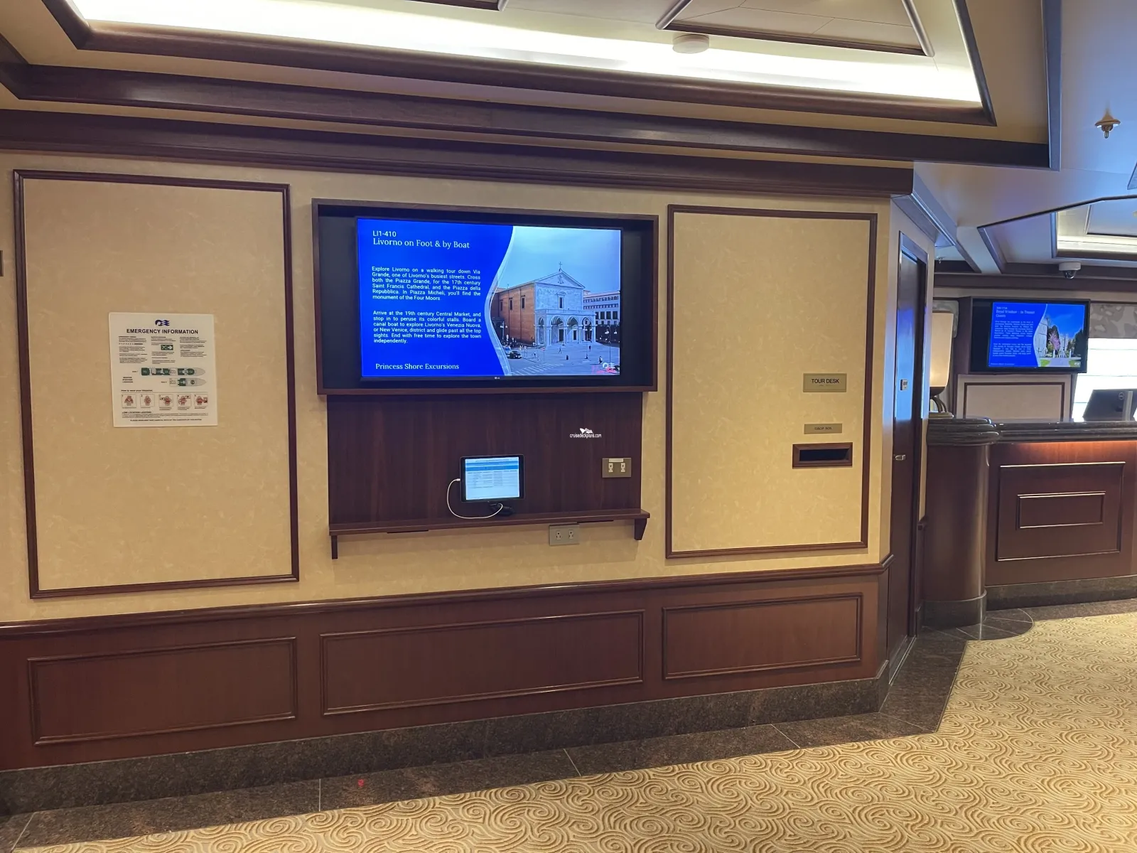 Desk for planning and booking ship sponsored shore excursions.The Piazza