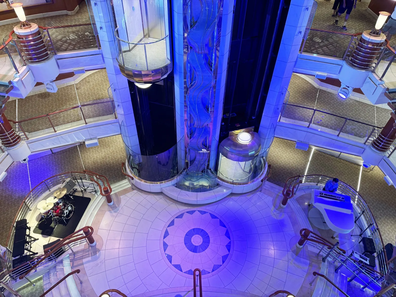 The area surrounding the ship's atrium on the Plaza Deck and hosts a variety of entertainment from musical performances to martini demonstrations and fruit carving.Cabin Check Tool