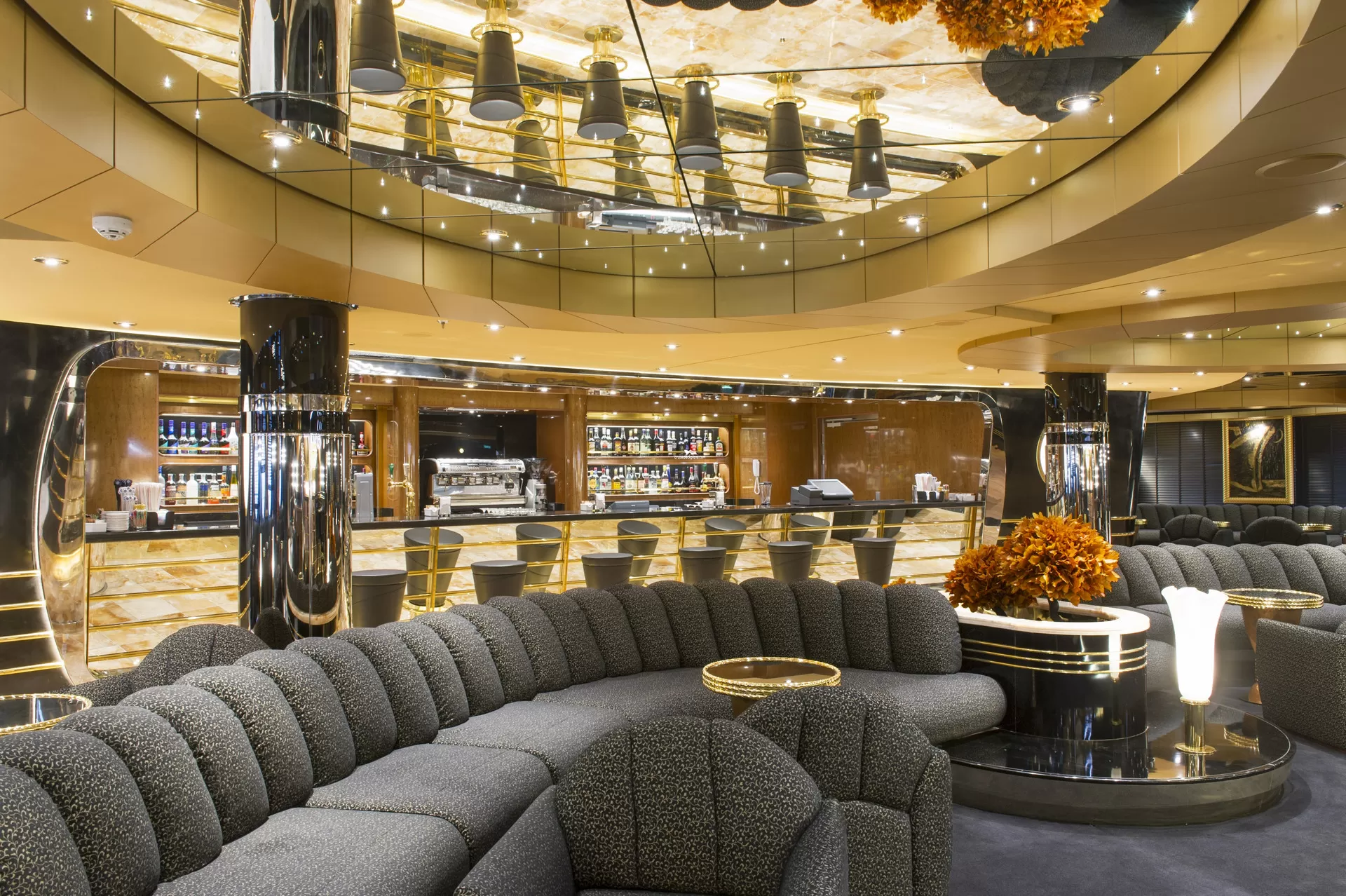 The ship's piano bar with seats for 108 guests, features glossy black walls and a golden onyx floor to admire whilst relaxing with a drink from its martini bar where bar tenders show off their skills as they mix martinis and shake a wide variety of other cocktails in front of guests.Art Gallery