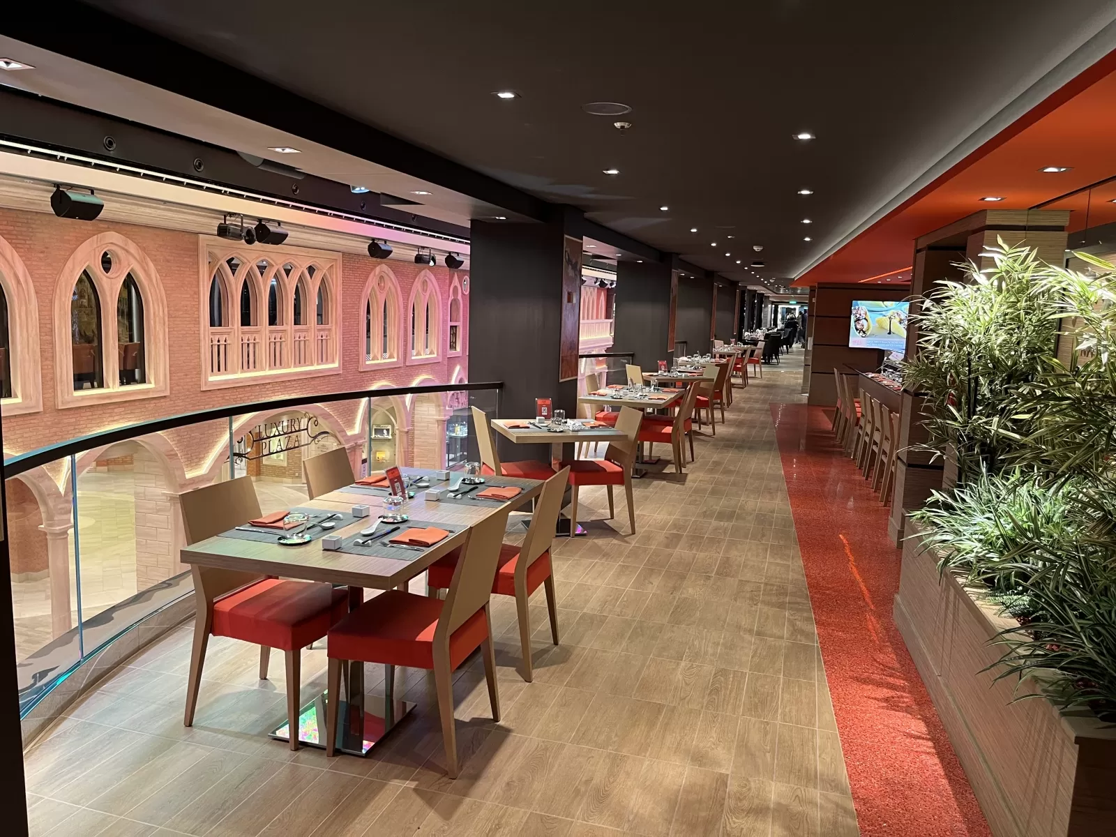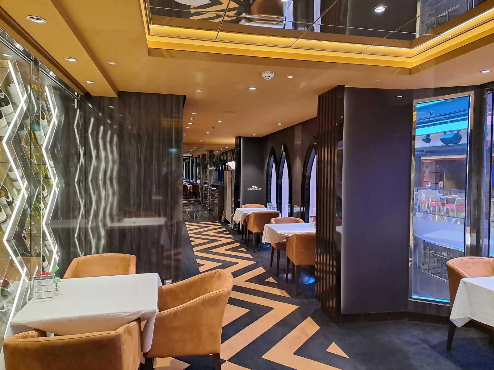 Enjoy live games, quizzes and talent contests all aired live throughout the ship. Also enjoy cocktails, beer, wine and soft drinks. Seats 101 guests in 3,659 square foot area.Il Campo Restaurant