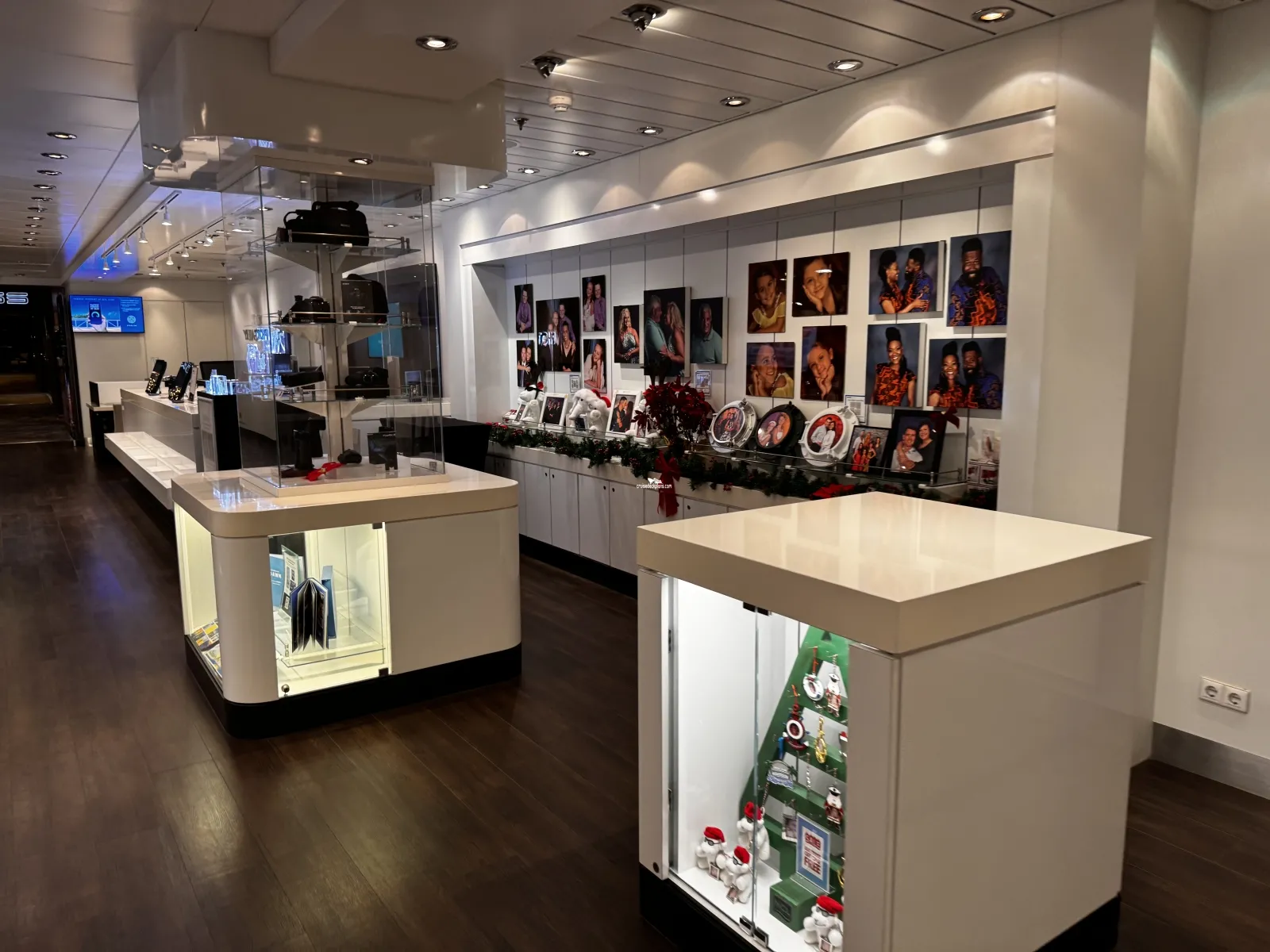 Displays all of the portraits taken by the ship's official photographers which guests can view and purchase along with digital cameras, accessories, media cards and batteries.Grand Atrium