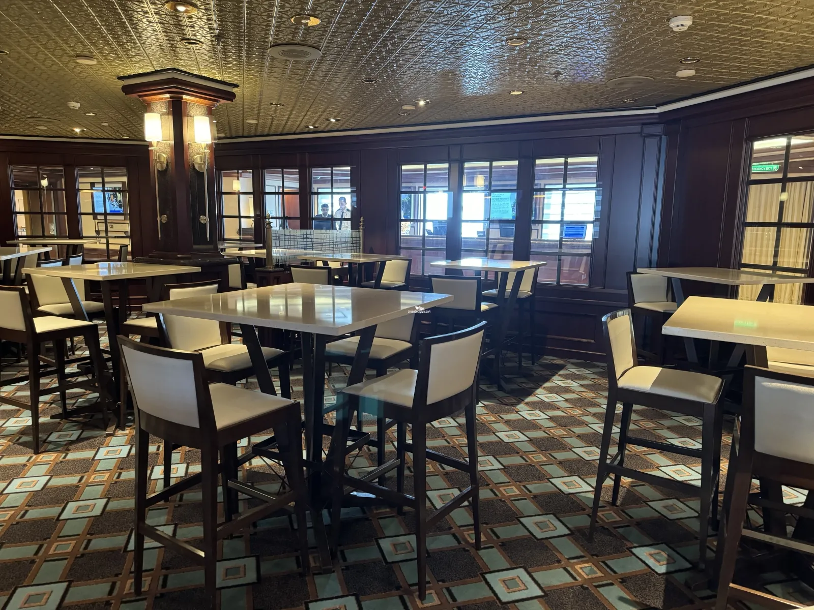 An additional charge 160 seat restaurant with reservations recommended. Open for dinner only between 6pm and 11pm, Crown Grill features premium beef and seafood items along with appetisers and special desserts.Explorers Lounge
