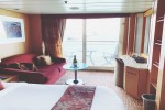 * Forward facing oceanview cabins on this deck are preferred because they are large irregular shapped cabins with a large porthole style window that looks over the front of the ship.