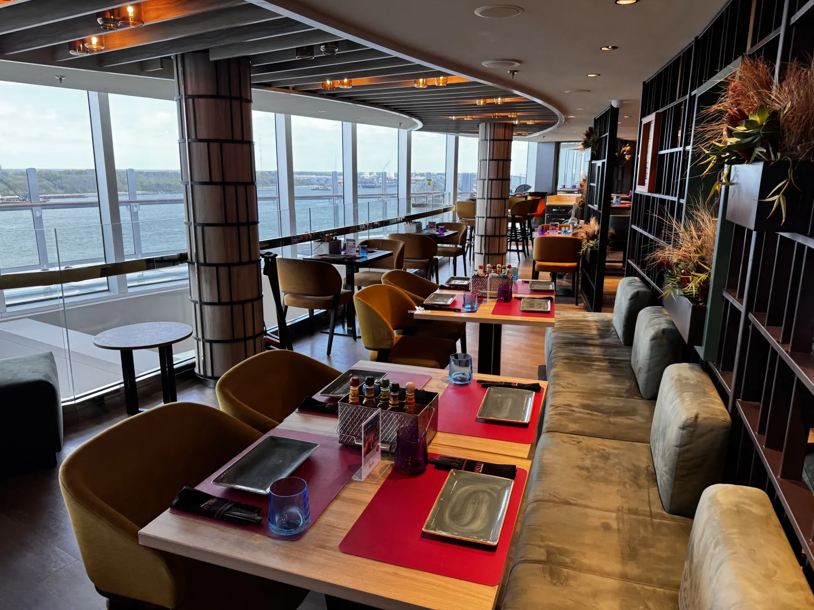 The American-style steakhouse serves select prime cuts from around the world, accompanied by bold New World wines and cocktails with swagger. Seats 72 people.Ocean Cay Restaurant