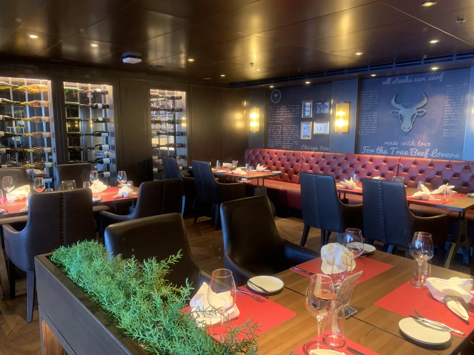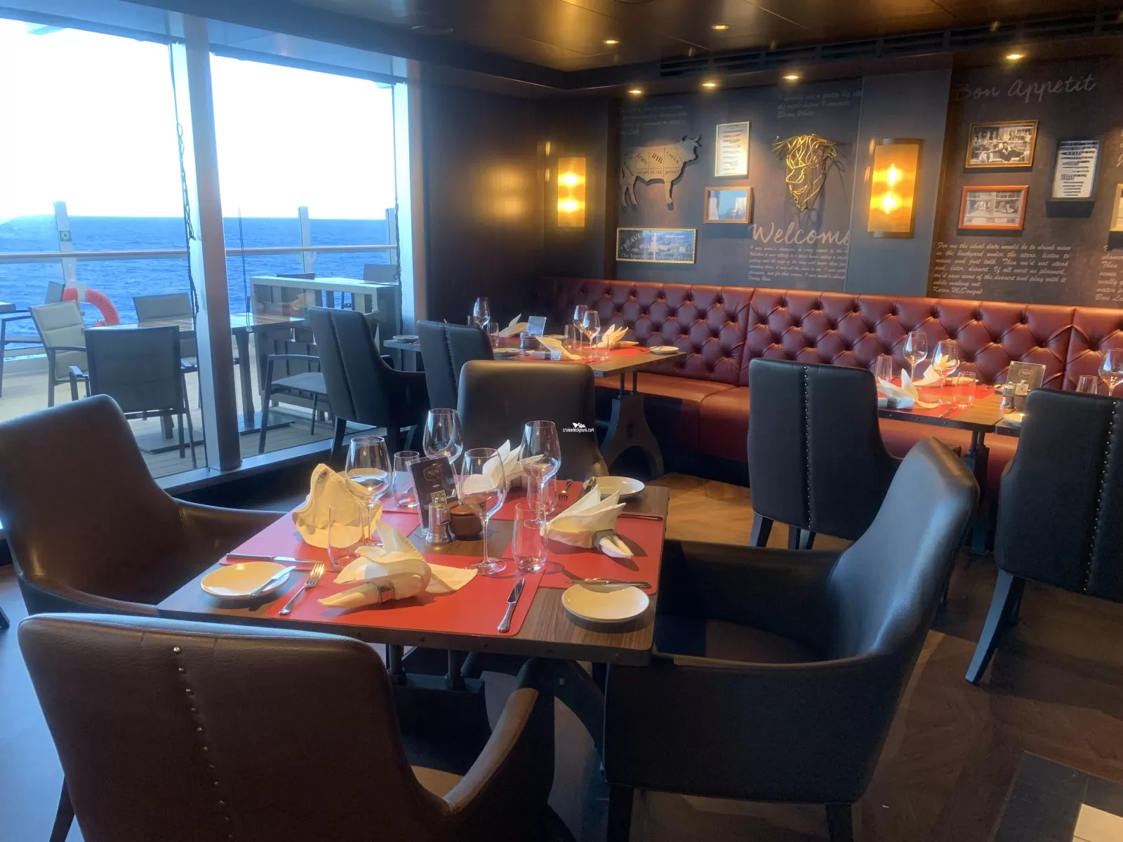 The American-style steakhouse serves select prime cuts from around the world, accompanied by bold New World wines and cocktails with swagger. Seats 118 people.Ocean Cay Restaurant
