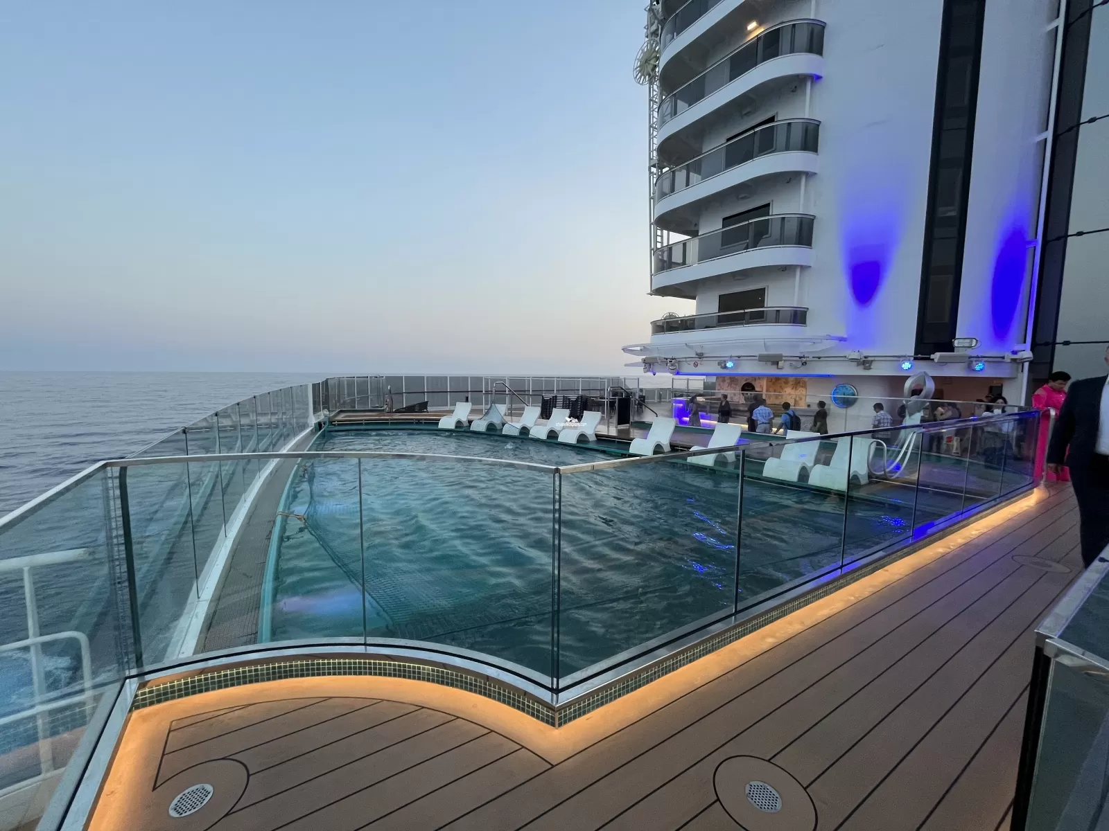 Four cooking stations featuring chefs that cook on open grill. Seats 64 people.Infinity Pool