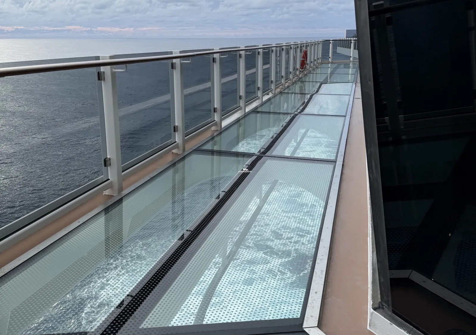 Walk over the ocean with nothing but clear glass below you. Located on both Port and Starboard side of deck 8.Indulge Food Hall