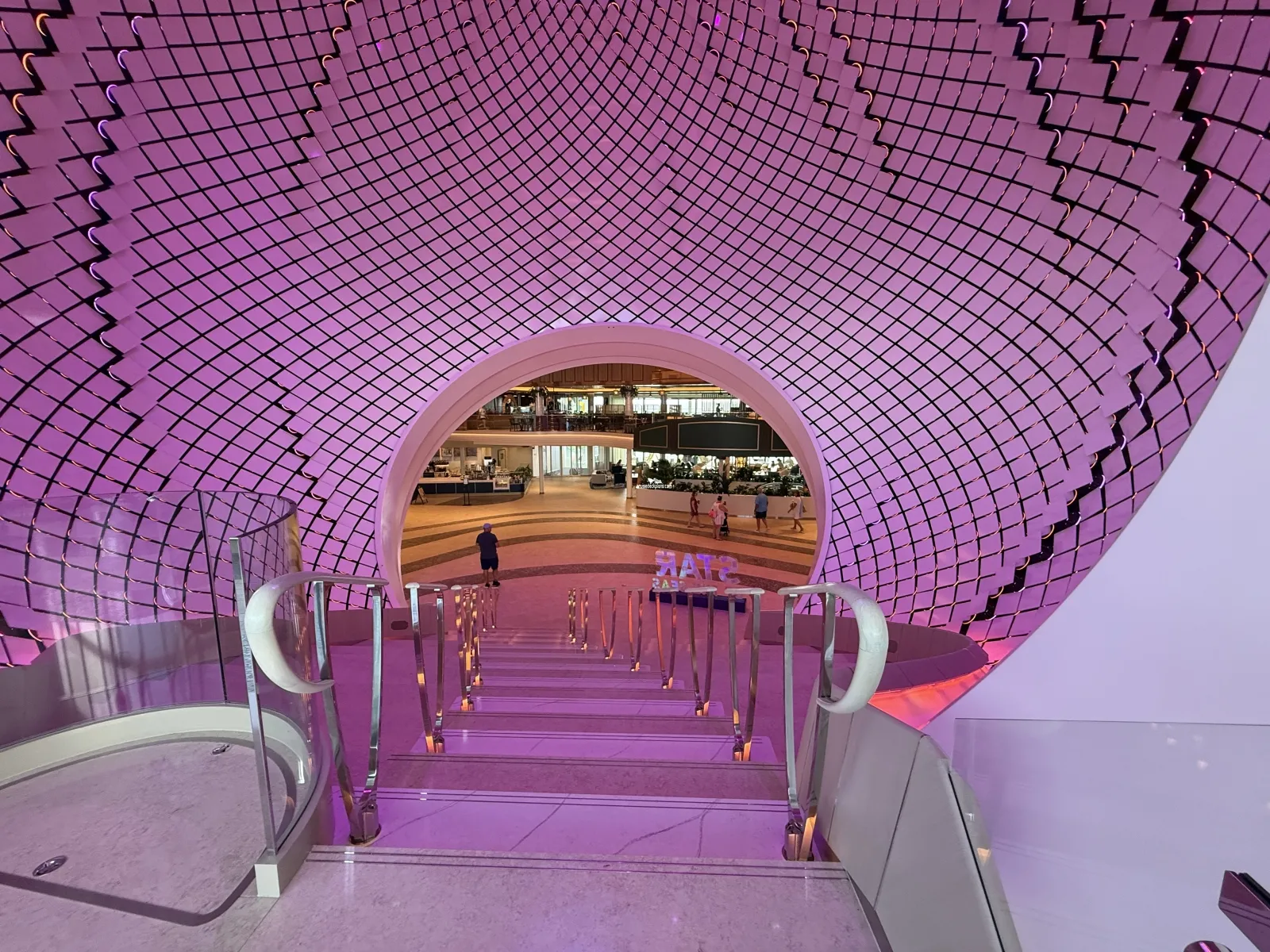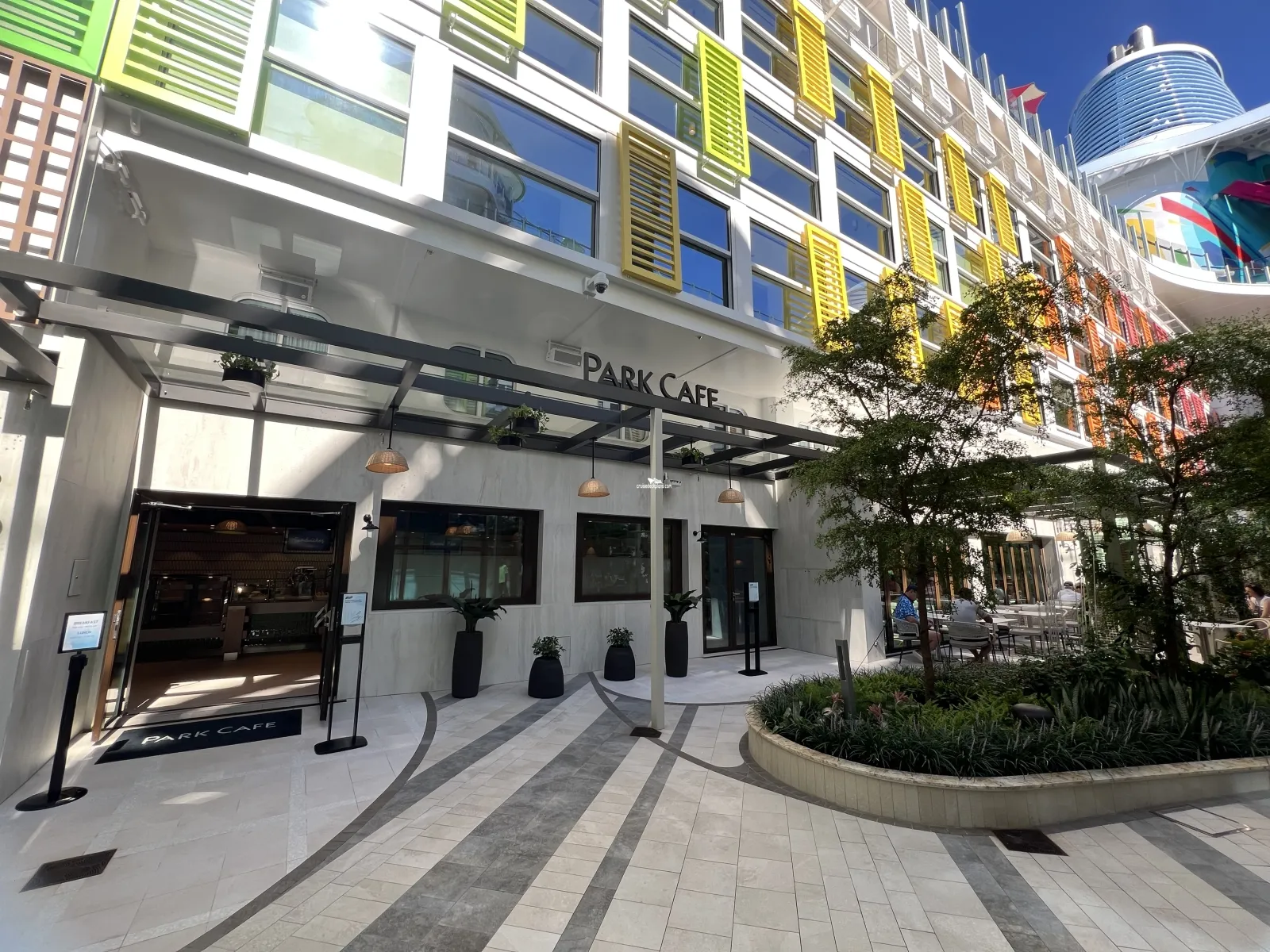 The Pearl, a unique sphere-shaped structure spanning Decks 5-8, midship. While this is one feature the cruise line has not yet fully revealed, a quick video glimpse shows that it is a stunning staircase connecting decks, likely with innovative special effects and lighting features in the interior, making it sure to be a photo hotspot.Central Park