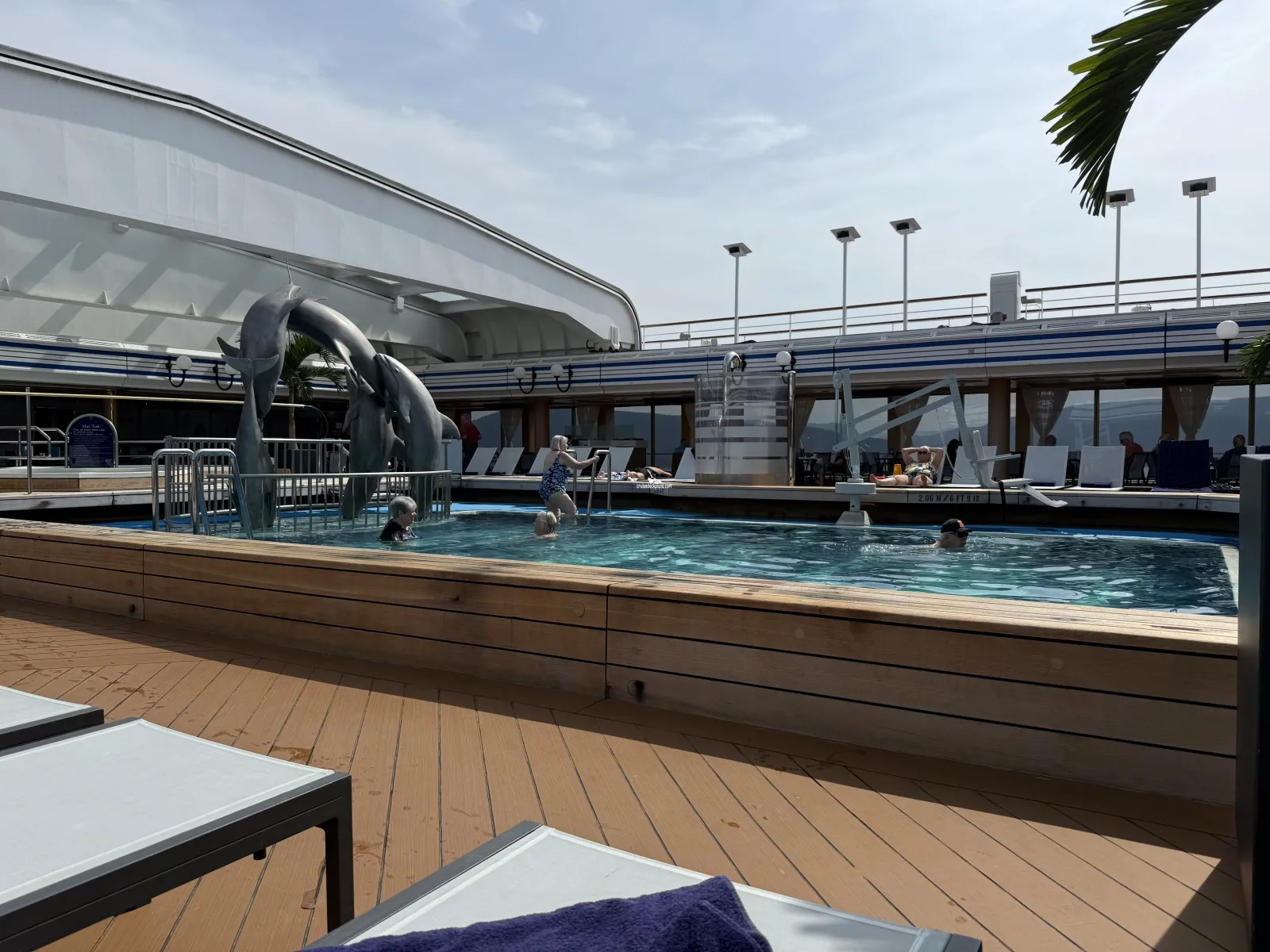 Aft pool with plenty of loungers and serviced by Sea View Bar.Lido Pool