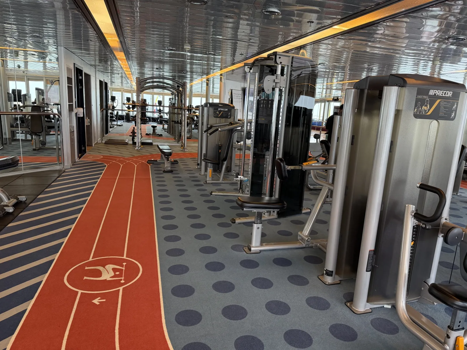 Main pool that has retractable glass roof and two whirlpools. Also in this area is the Lido Bar and a stage for live music.Fitness Center