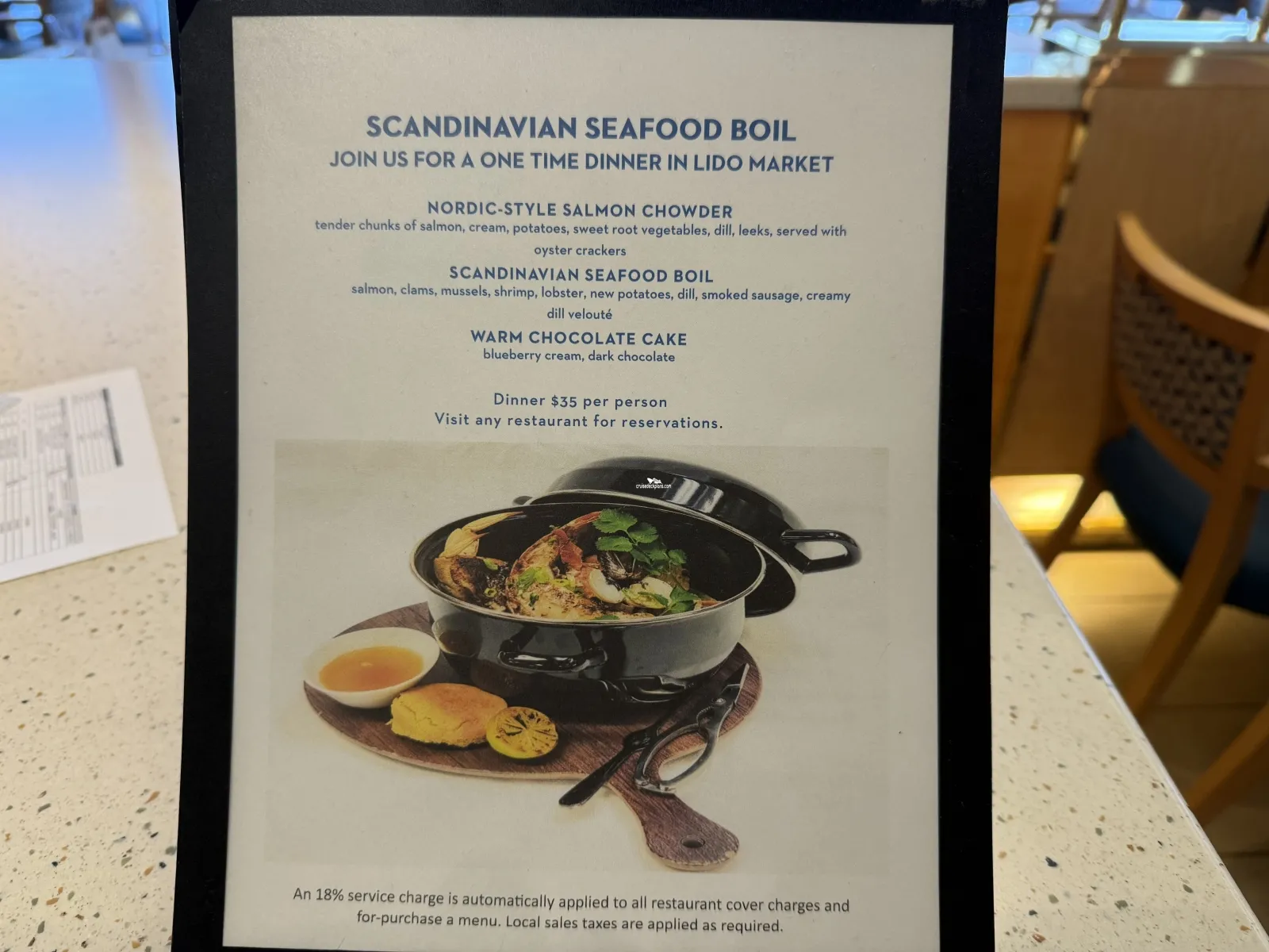 Offered periodically on a cruise for a fee. Entry includes some sort of soup followed by a boiled bowl of seafood and then desert. Located in part of the Lido Restaurant.Cabin Check Tool