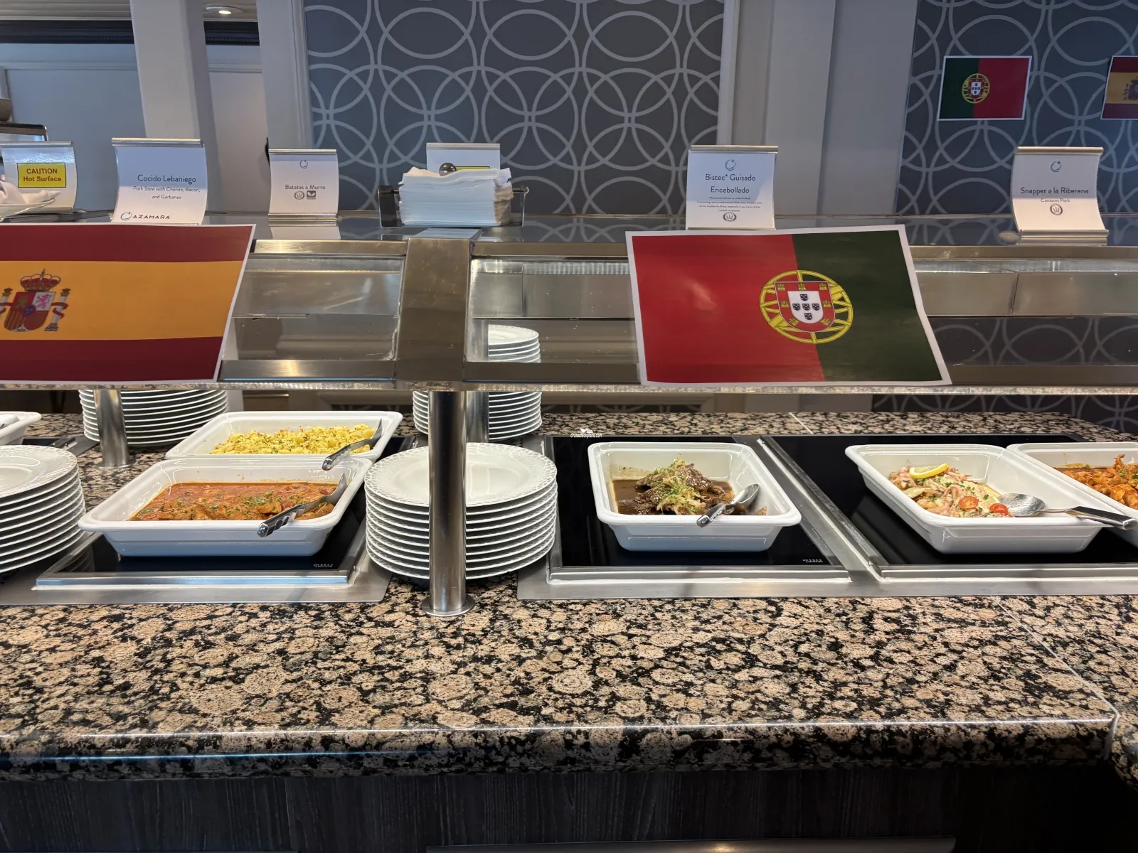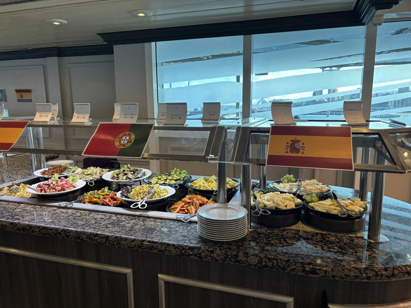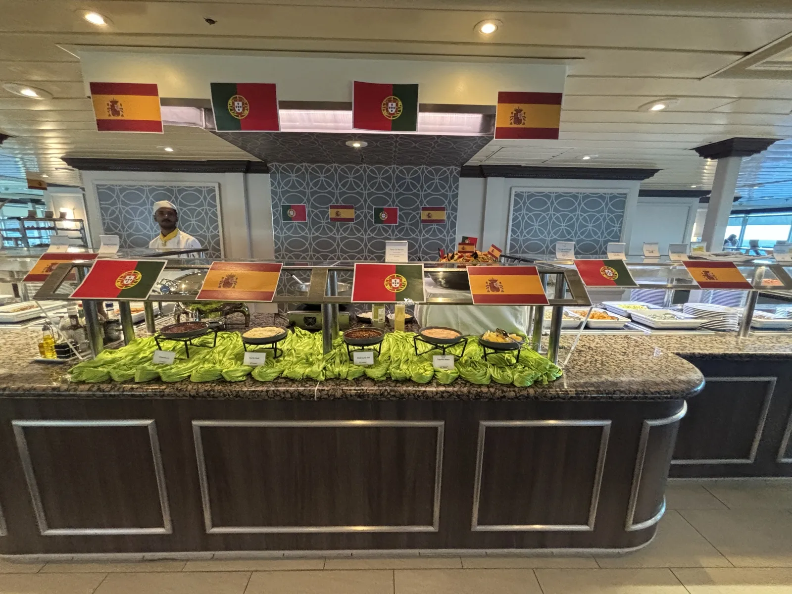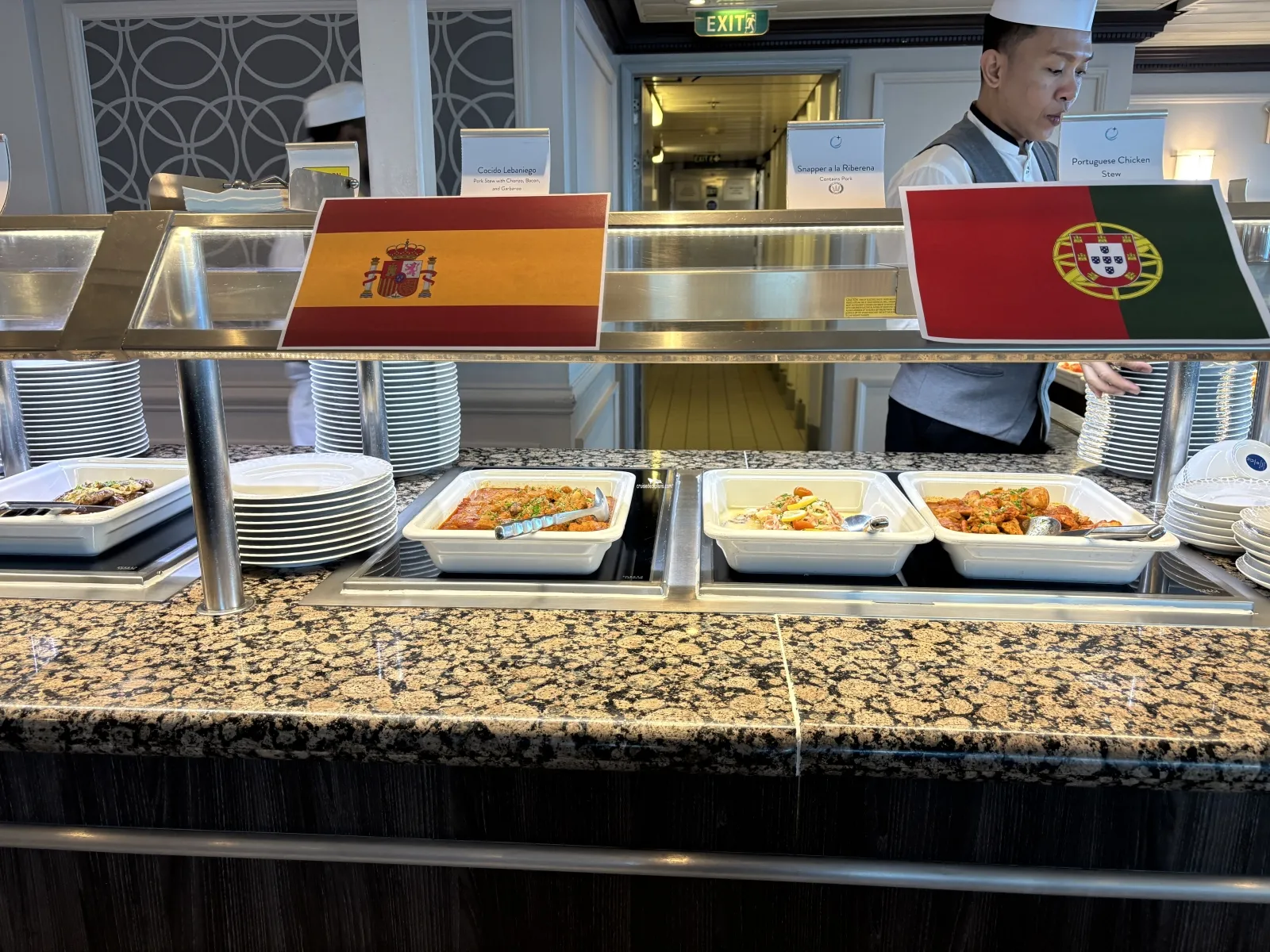 The ships buffet restaurant that is open for breakfast, lunch, and dinner. Breakfast hours are from 6:30 to 11:00 a.m. Lunch is from noon to 2:30 p.m. Dinner is serviced from 6:00 to 10:00 p.m.Pool Bar
