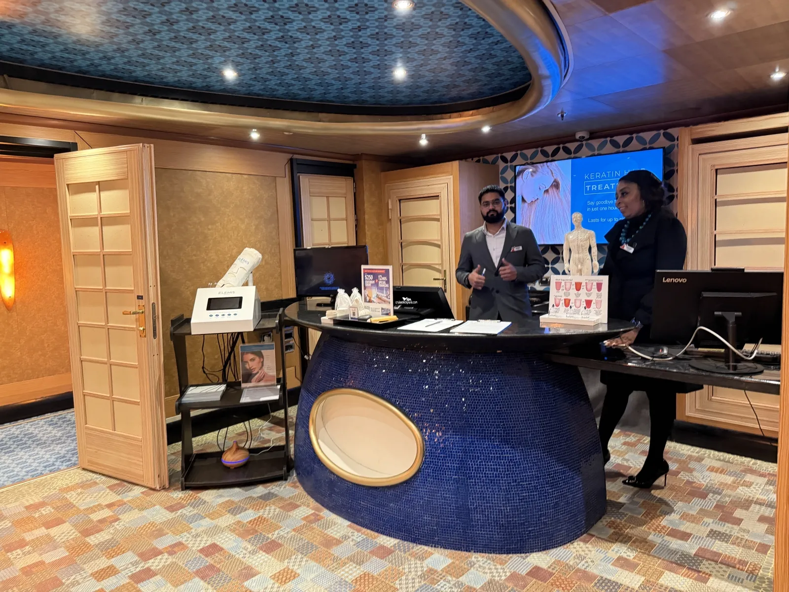 Spa and Salon open 8:00 a.m. to 10:00 p.m. 2 saunas and locker rooms (men/women) Treatment massage rooms ($). Thermal Suite ($*). Hydrotherapy Pool ($*). European-style treatments and services ($). Hair and nail grooming for men and women ($). Medi-Spa and Acupuncture ($).Lido Pool Area