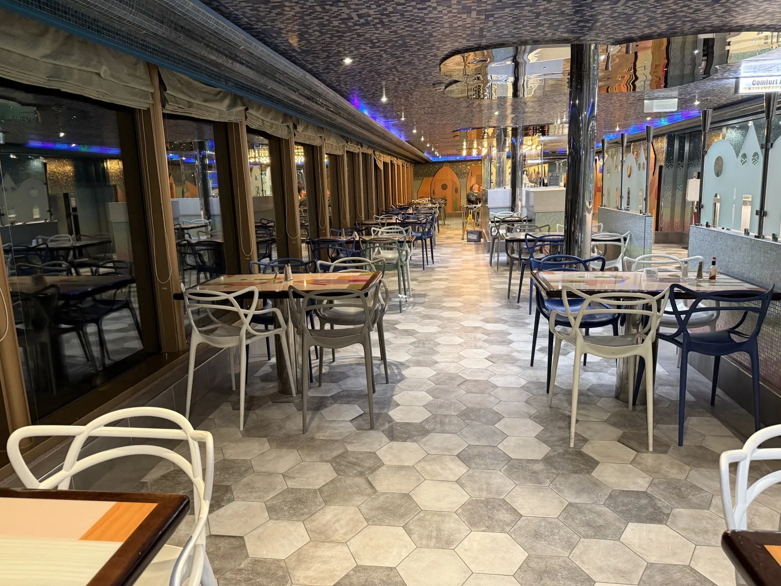 Self-Service Casual Lido Restaurant. Hours: open for breakfast / lunch / dinner / late night snacks. Available 24 Hours: coffee, hot tea, hot chocolate, lemonade and unsweetened iced tea.Pizzeria del Capitano