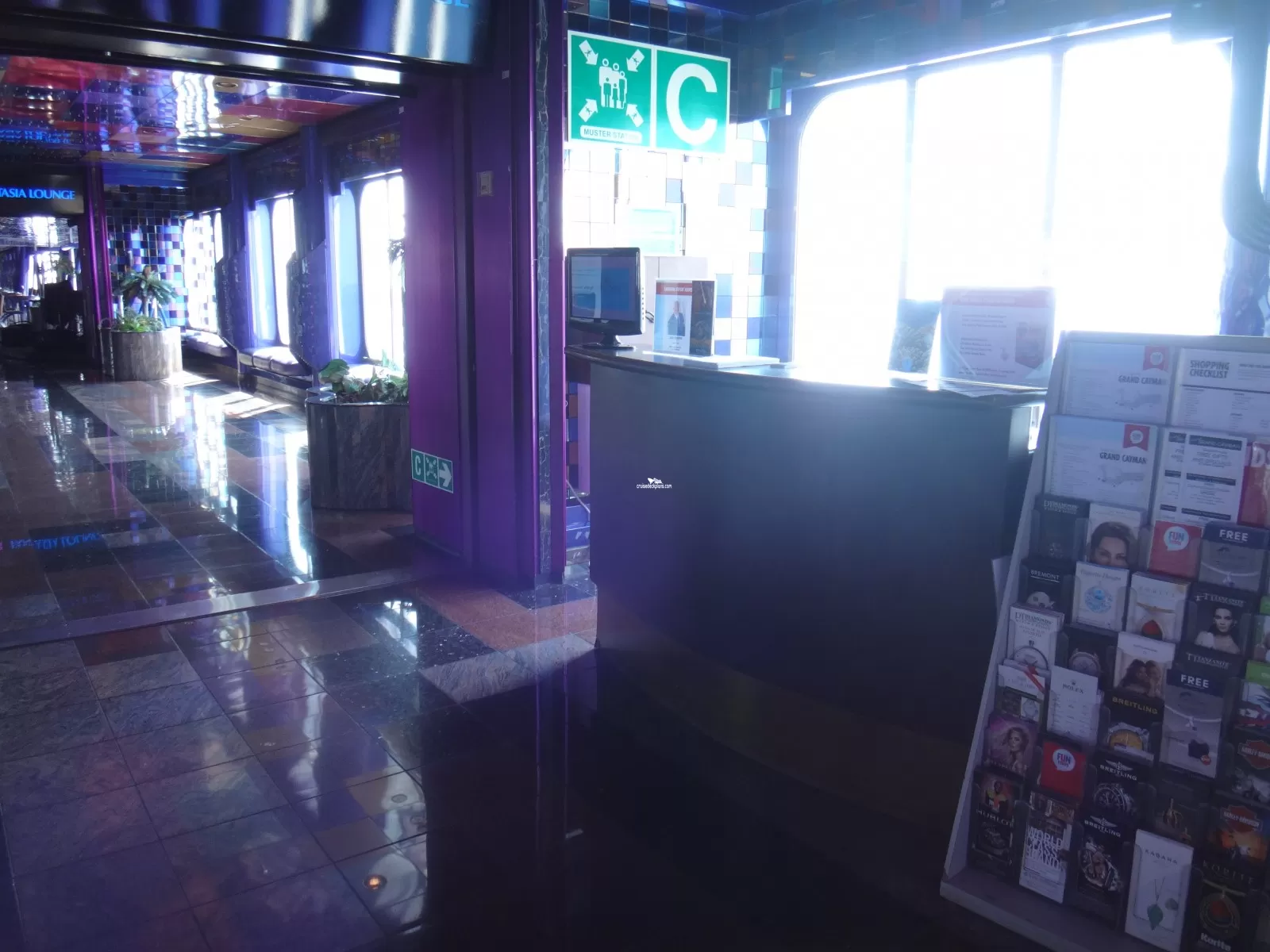 Ships atrium. On first level is bar, shore excursions, guest services, internet and lounge areaCabin Check Tool