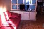 There is ample floor space for wheelchair maneuverability. Wheelchairs can roll under sink and into shower. Fold-down stool in shower with detachable showerhead. Bath walls have handrails. Adjustable mirror above sink. Light switches are at wheel chair level. Pull down clothes racks.
