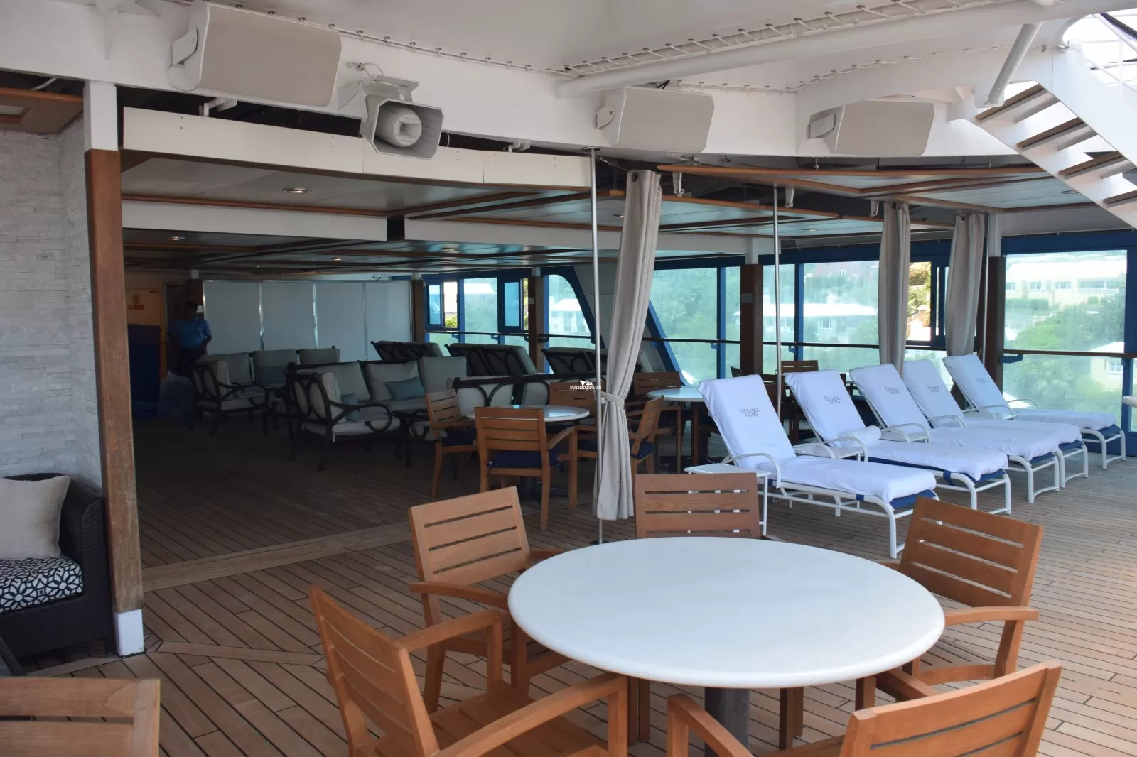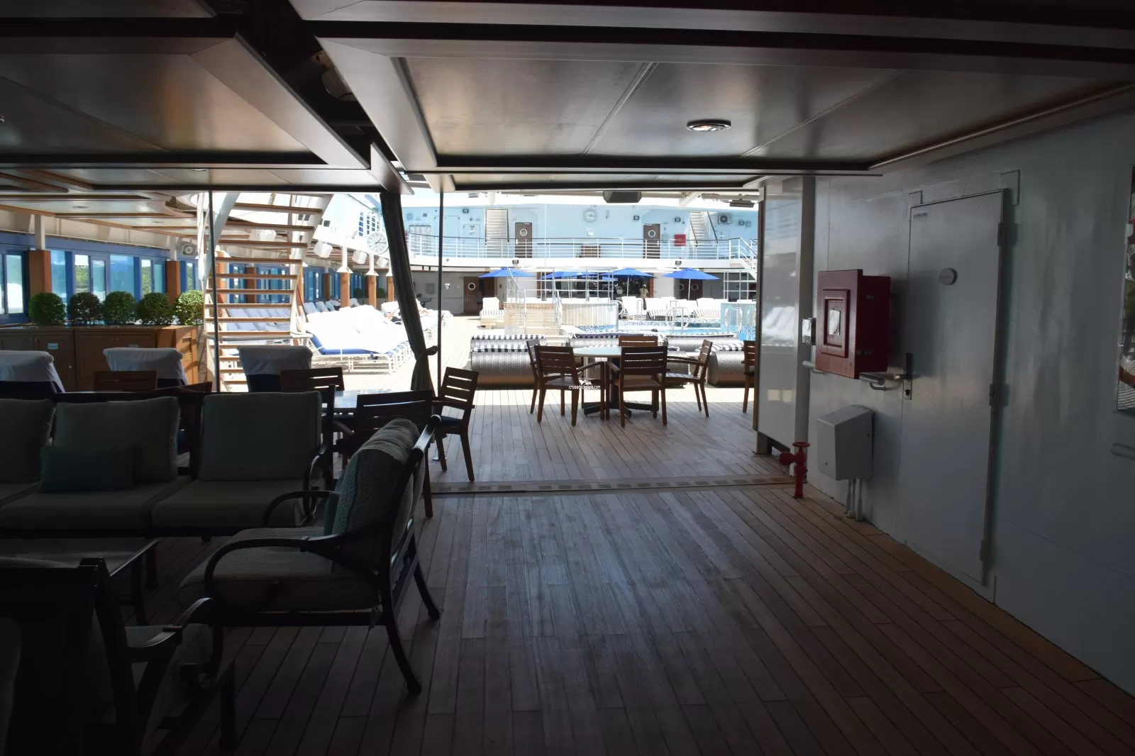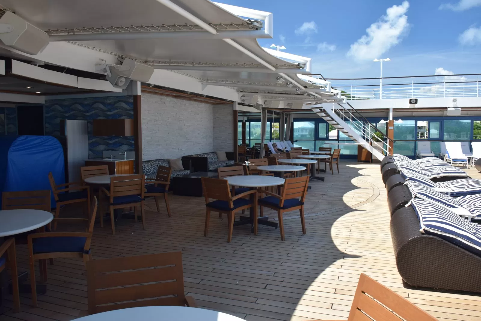This tool will help you see what is on the deck above and the deck below your stateroom. Don't be surprised by loud chair scraping noise above you.